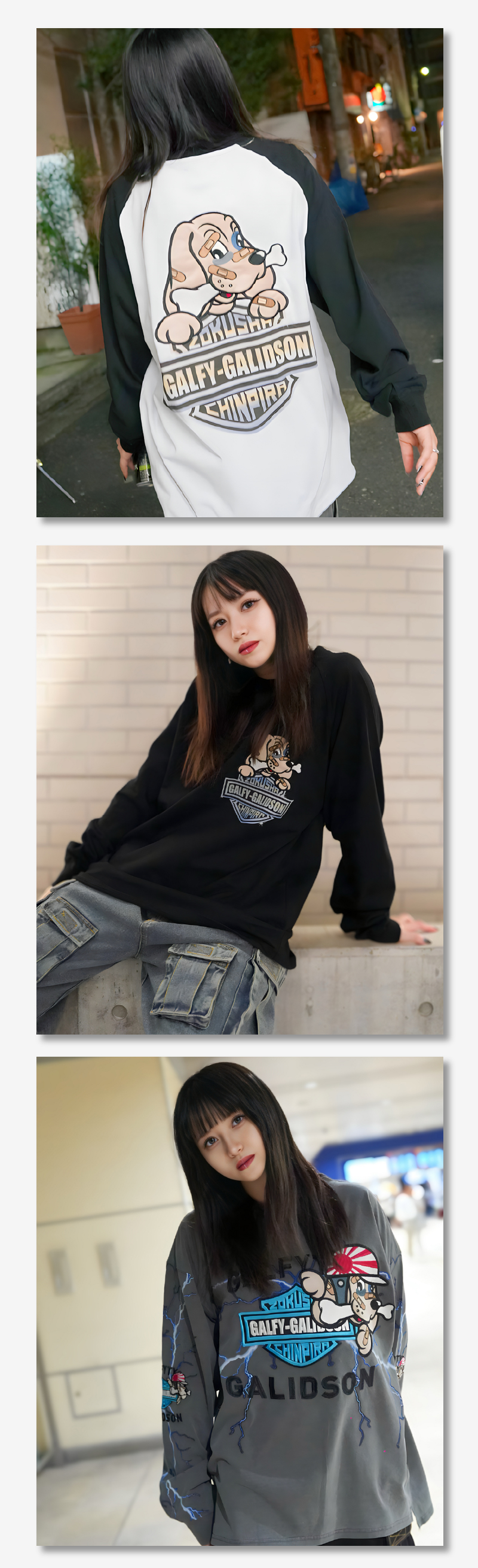 ストリートブランド「GALFY」と「GALLIS ADDICTION」によるコラボレーションシリーズから、圧倒的な存在感を放つ“バイク乗りロンTee”が登場。 ブランドの象徴であるガルフィー犬をモチーフに、バイカースタイルをテーマにした迫力のあるグラフィックを落とし込んだデザインに仕上げました。