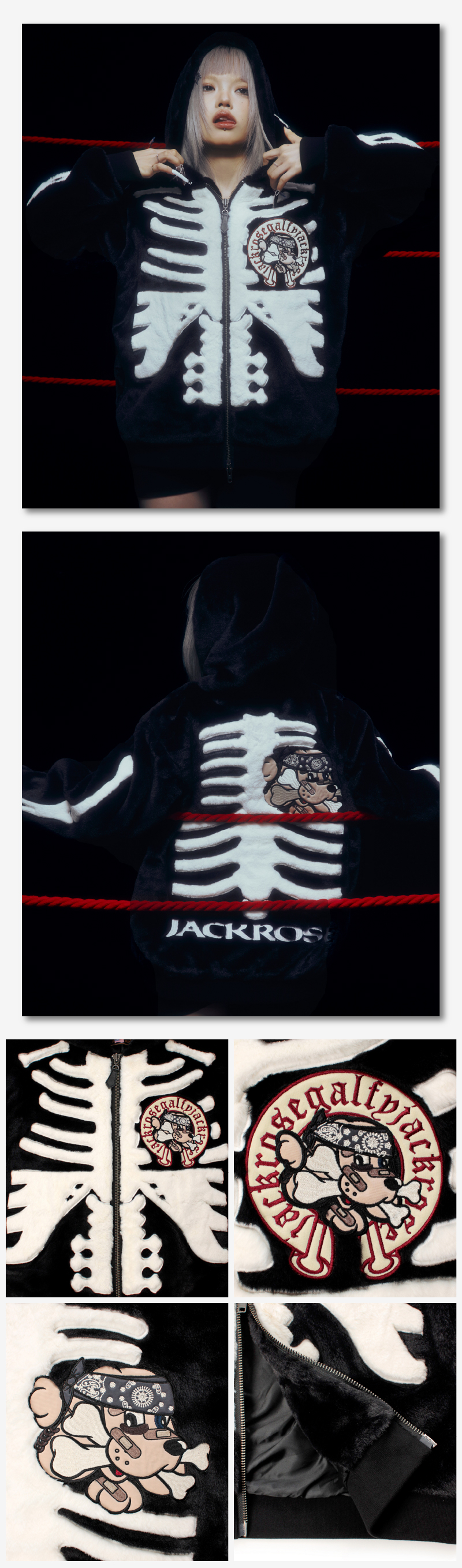 フロントはシンプルなジップアップ仕様ながら、バックに大胆に施されたブランドロゴ刺繍が視線を惹きつけるデザイン。オーバーサイズのシルエットで、ユニセックスに着用可能。