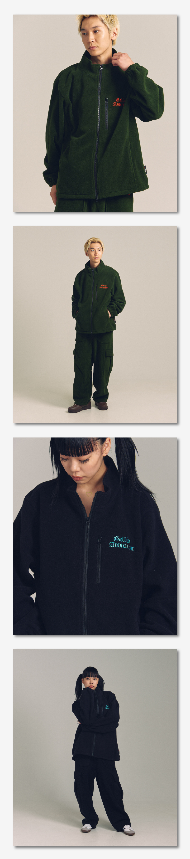 GALLIS ADDICTION(ガリスアディクション)から、POLARTEC®フリースを使用したトラックトップとカーゴパンツによるセットアップが登場。