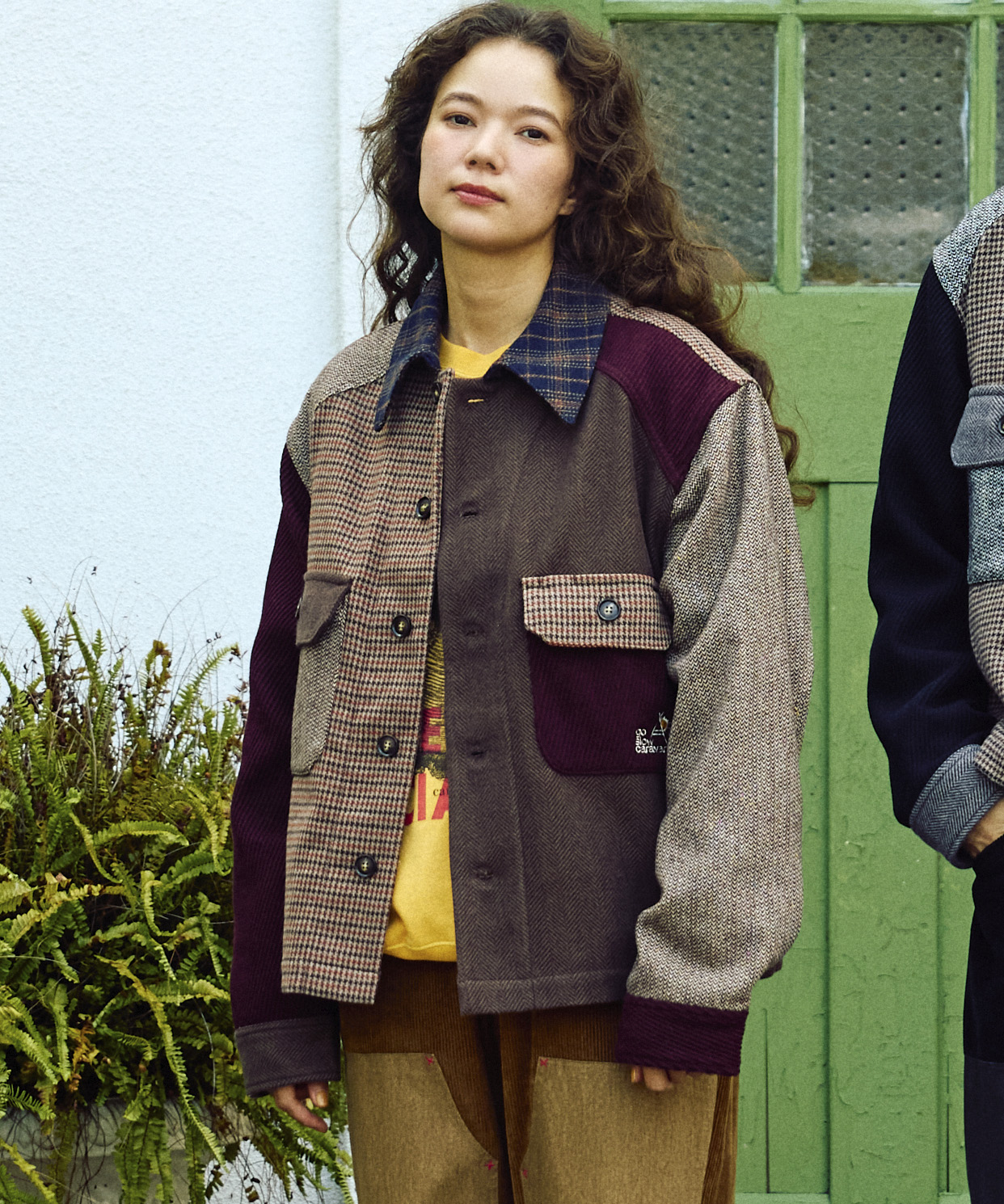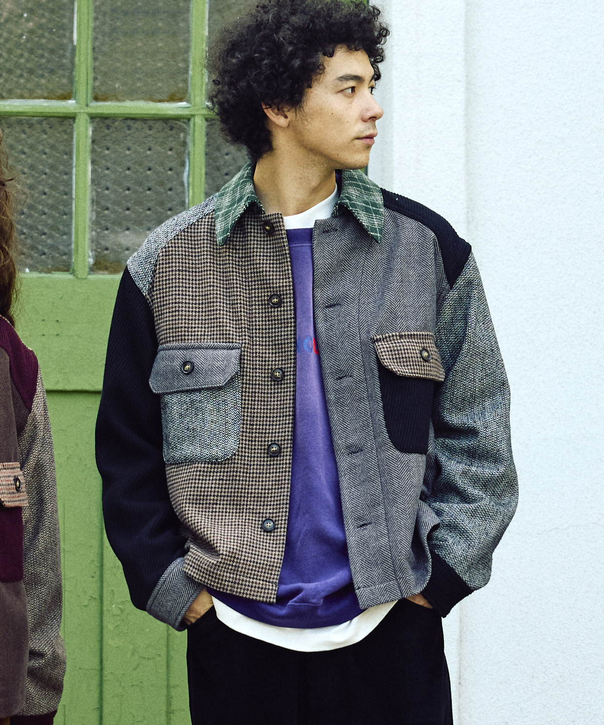 表情豊かで温かみのあるウールライク素材を数種類組み合わせたショート丈のCPOジャケット。胸ポケットは大きめに設定し、デザインのアクセントと機能性をプラス。