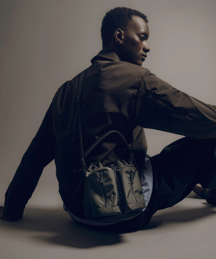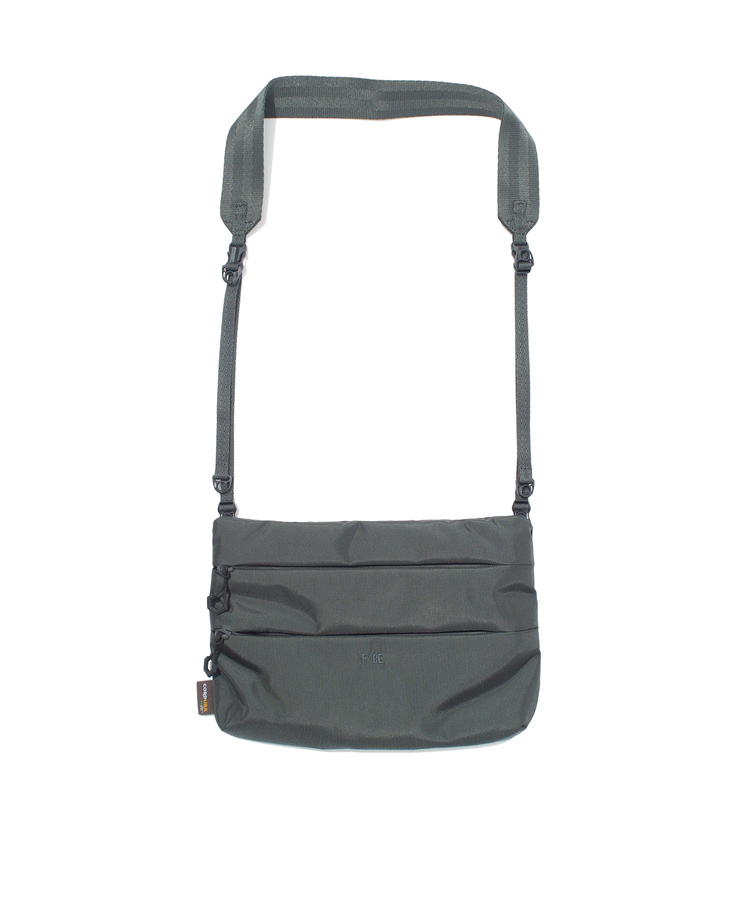 フロント部分にタックを入れることで立体的かつ容量のあるフロントジップポケットになっています。 ショルダー部分はF/CEオリジナルのロープを調整することで長さを調整することができ、ワンショルダーでも使用できるアイテムになります。