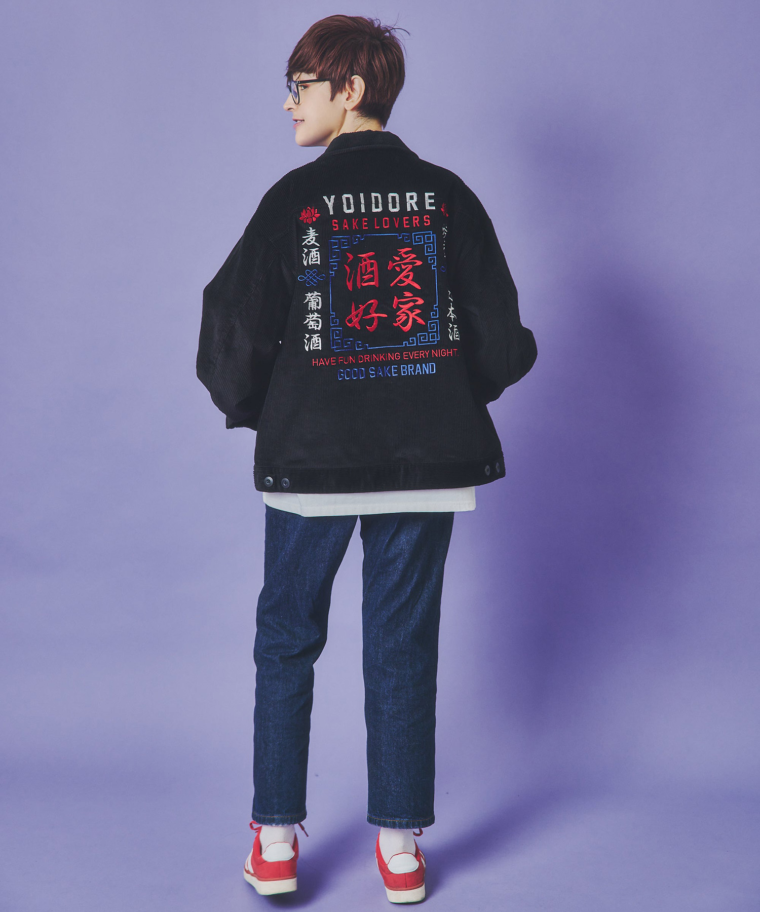 YOIDOREのアイコン的デザイン「酒愛好家」モチーフをオール刺繍で配置した激シブなアウターが登場です。
