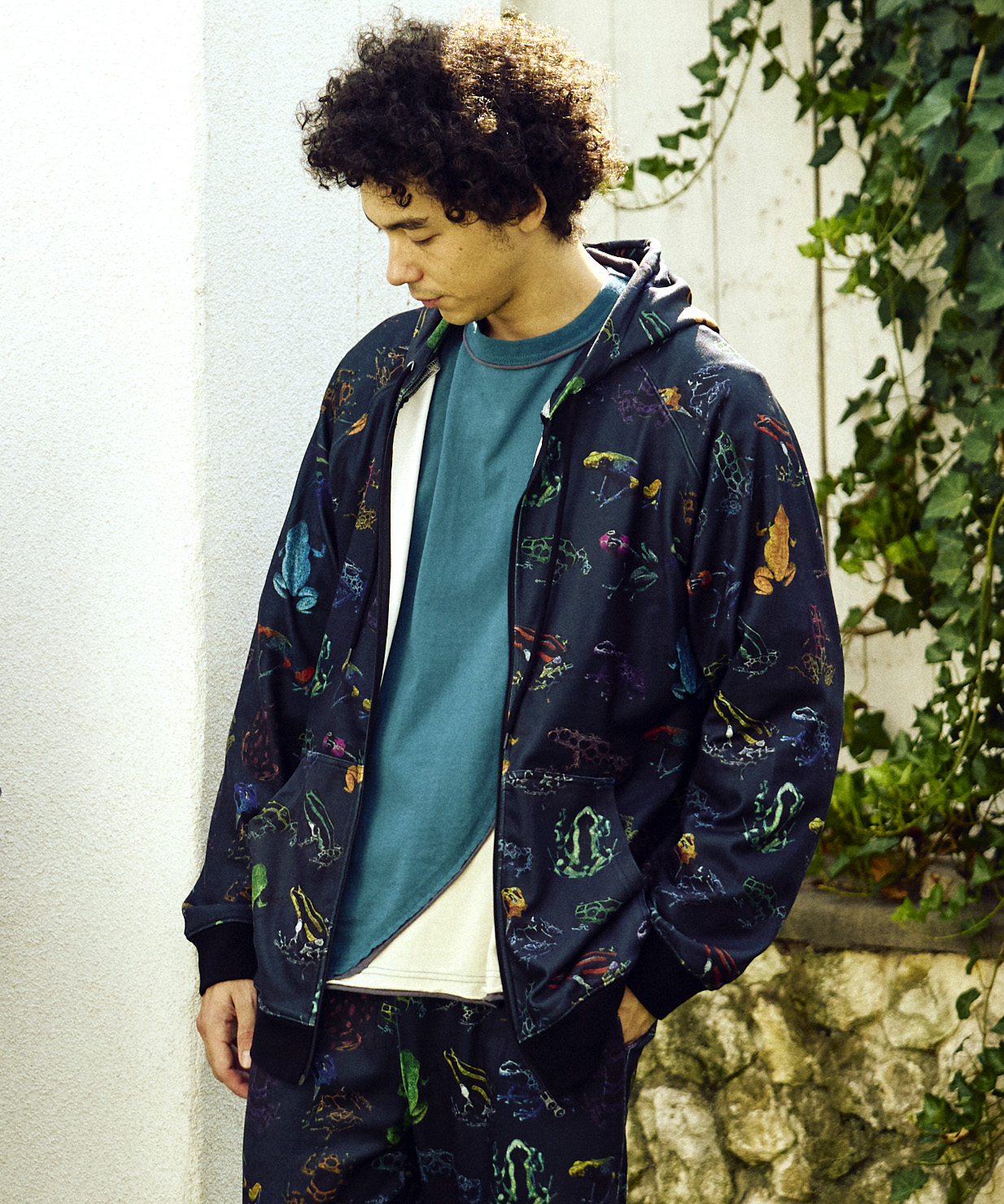 しっとりなめらかなスムース生地に総柄を転写プリントしたアイテムにZIP UPフーディーが初登場☆今季の柄は《ヤドクガエル図鑑》と《柴犬と晩酌》がラインナップ。伸縮性に優れた生地で、まさに“寝るまで1日中着ていたい”リラックスアイテムです。インナー使いにも、軽い羽織りとしても、テント内のリラックスタイムにもおすすめ。