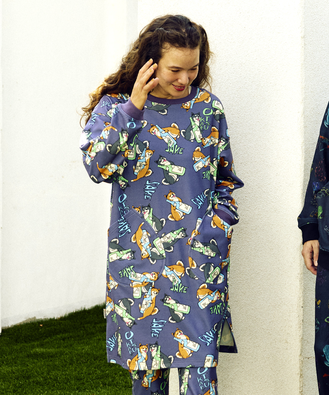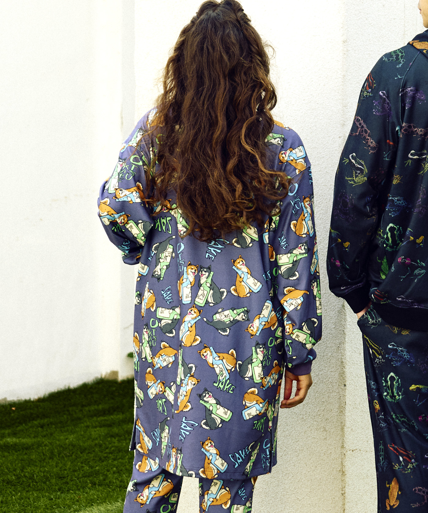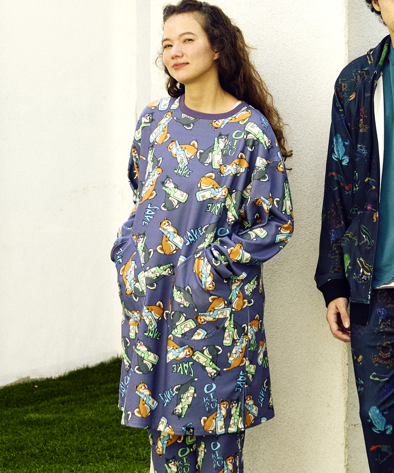 しっとりなめらかなスムース生地に総柄を転写プリントしたアイテム。今季の柄は《ヤドクガエル図鑑》と《柴犬と晩酌》がラインナップ。伸縮性に優れた生地で、まさに“寝るまで1日中着ていたい”リラックスアイテムです。インナー使いにも、軽い羽織りとしても、テント内のリラックスタイムにもおすすめ