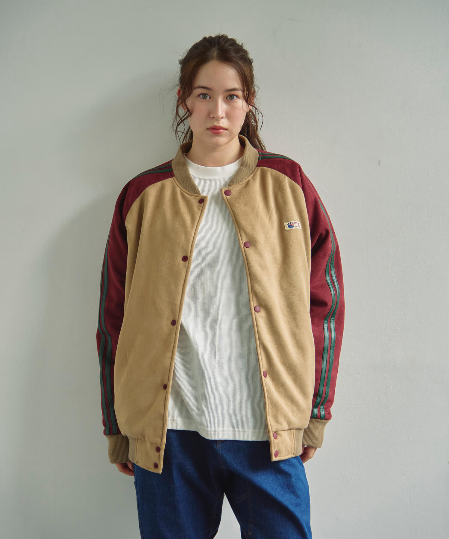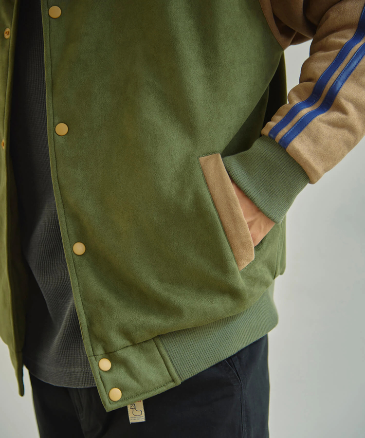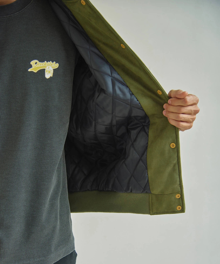 Duckster/ダックスターから中綿にサーモライトを使用したスエード×レザー調コンビのスタジアムJKTが登場!