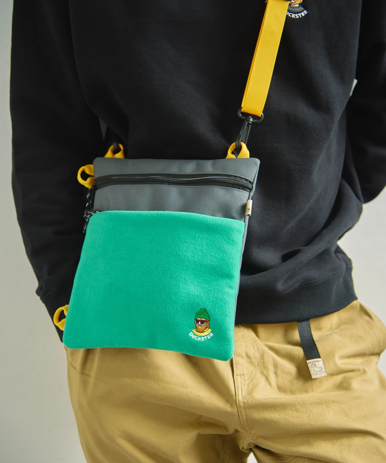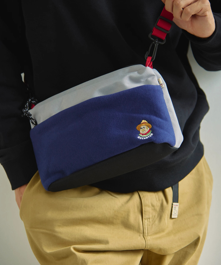 3色の配色とスエード調素材の表面感、PUストライプの組み合わせが新鮮な印象を与えます。胸にはオリジナルの織ネーム、背面にはペーパーネームを配し、デザインのアクセントに。