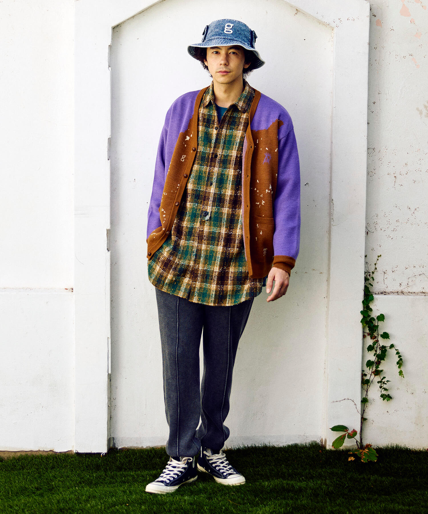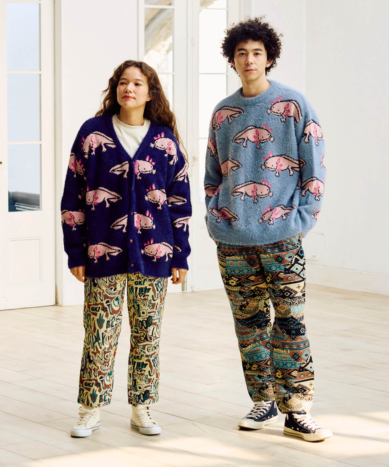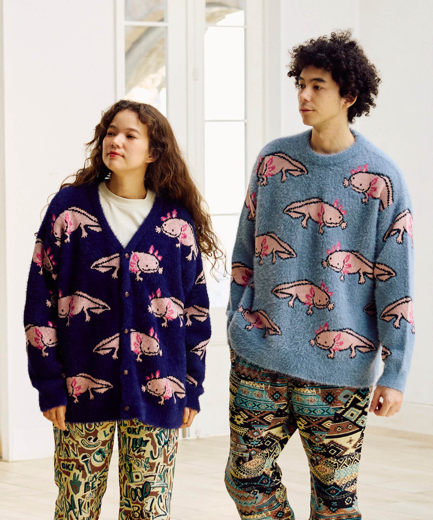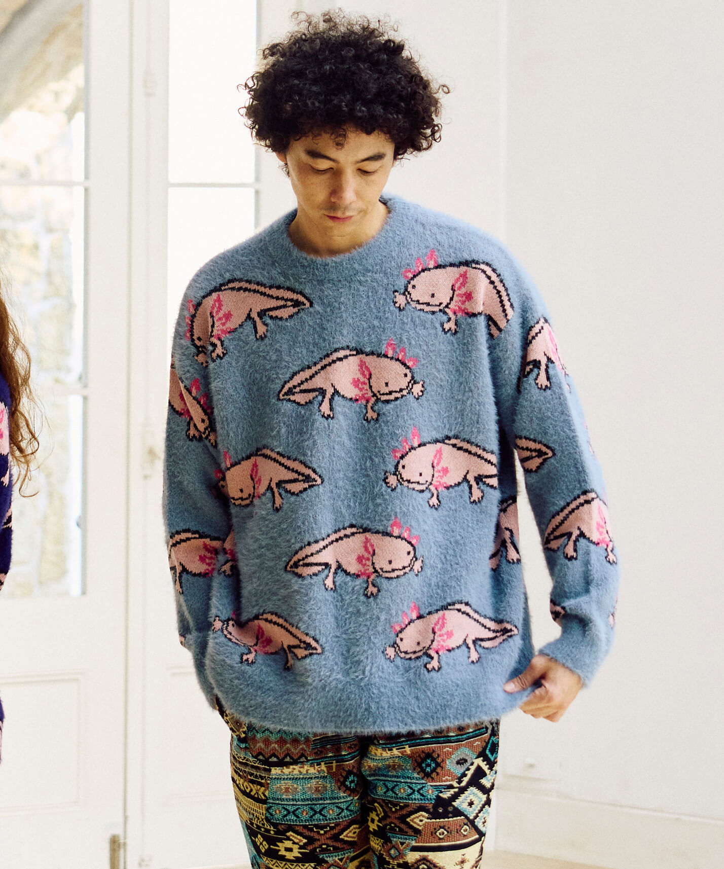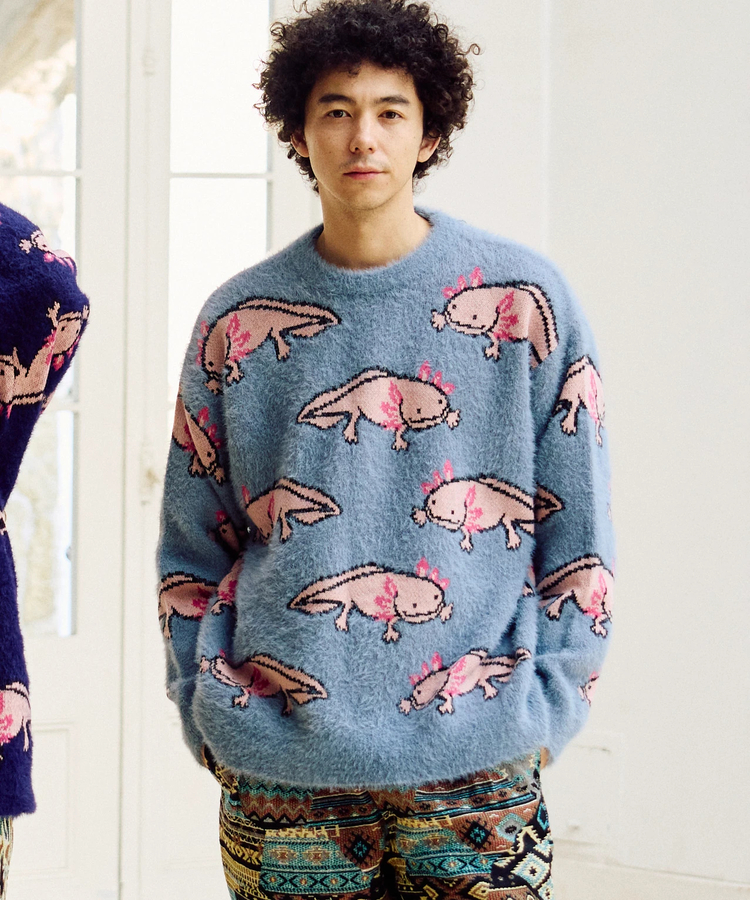 ウーパールーパーシャギー MIX ジャガードニットBIGセーター&カーディガン(MENS)