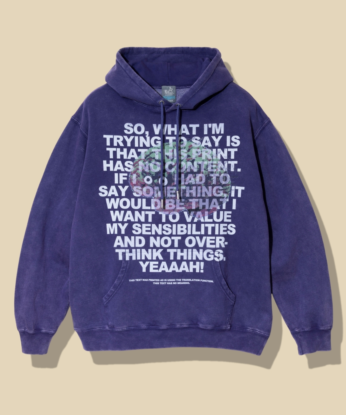 カンガルーポケット上に生地に馴染むインクでアウトラインのみを単色プリントすることで、ヴィンテージ感漂う一枚に仕上がっています。