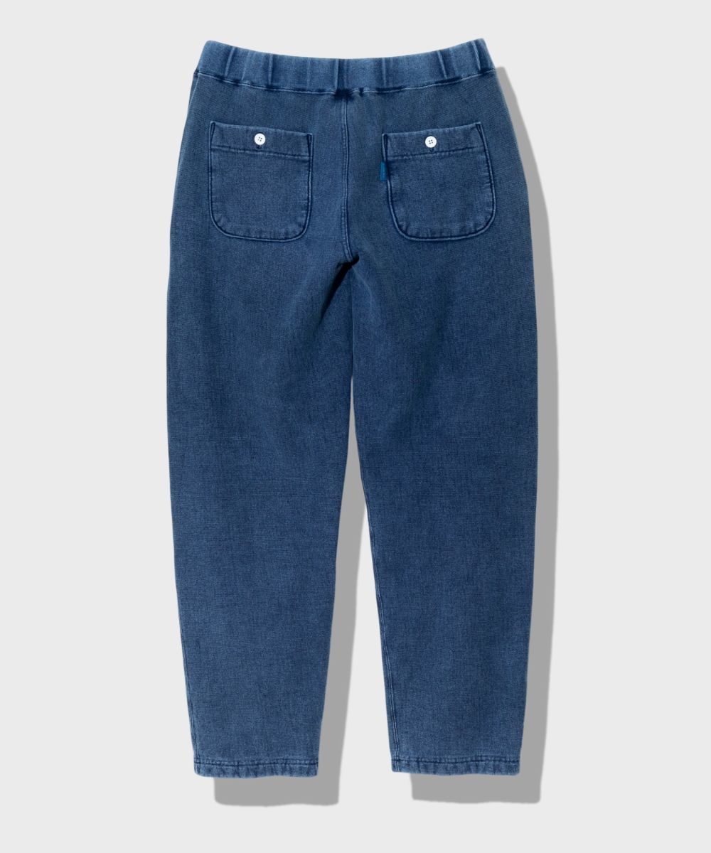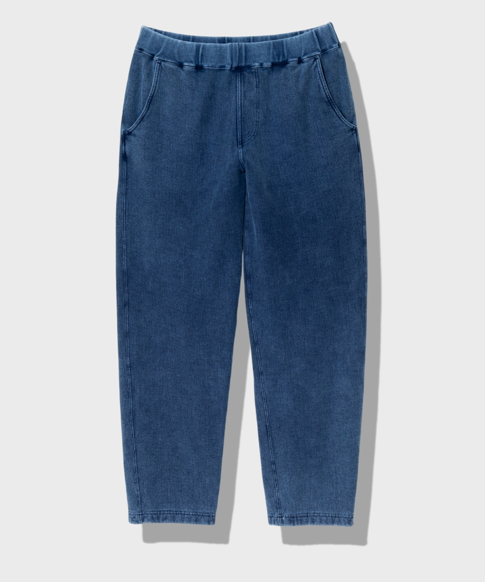 ブランド初期から時代に合わせシルエットやディテールをアップデートしながら定番品として展開してきた、ヘビーオンススウェットのストレートパンツを独自のインディゴ染めとシェイブ加工でビンテージデニムのような表情に仕上げた限定品。
