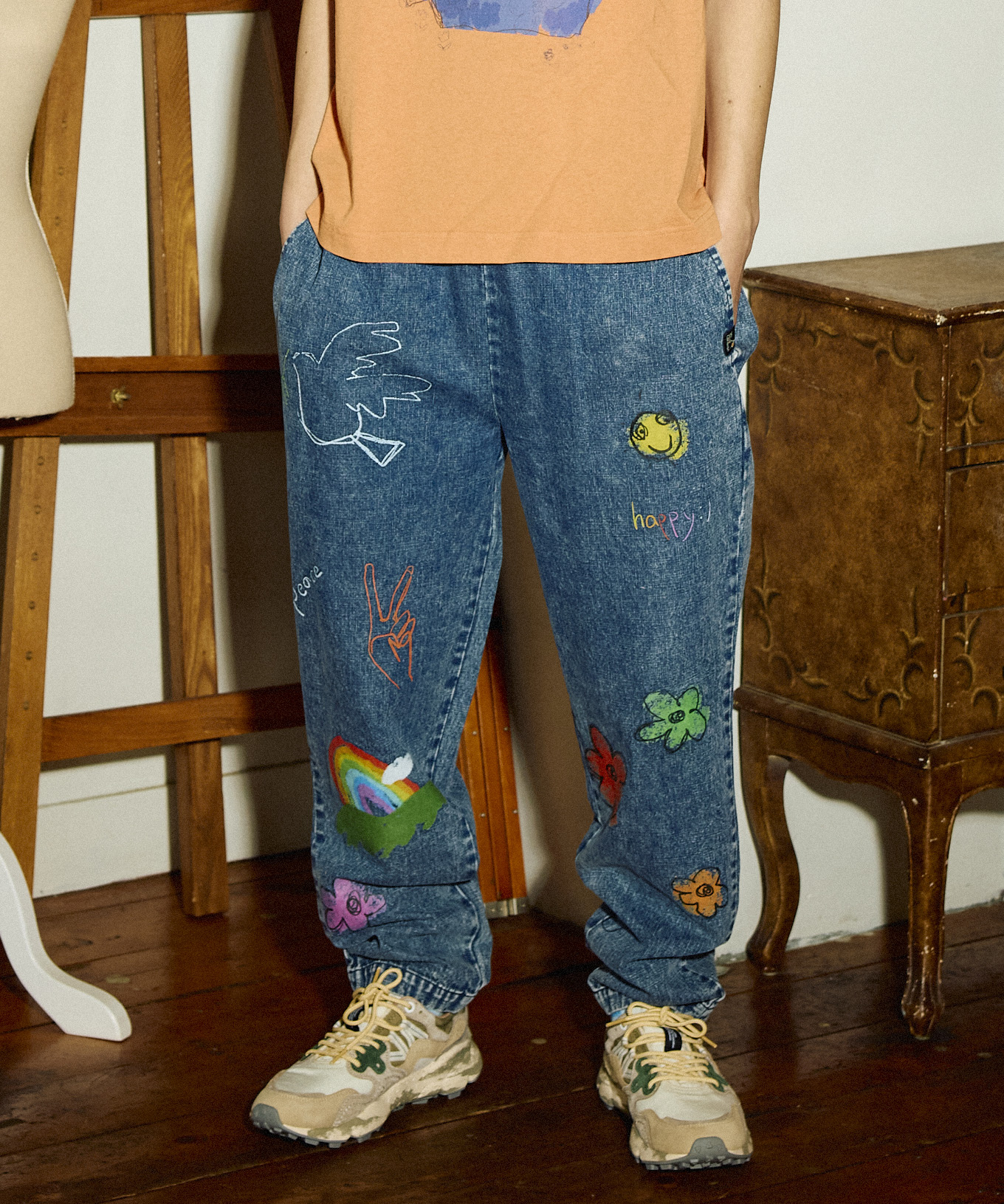 落書きプリントイージーパンツ (MENS/WOMENS)