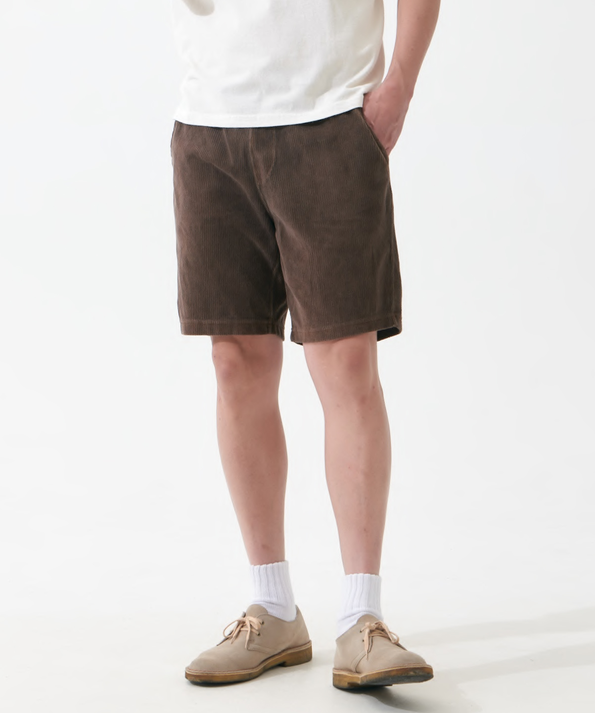 USAコットンを使用したオリジナルファブリック“ニットコーデュロイ”の生地感を生かしたシンプルなショーツ☆ライトグレー&ブラウンは26SSシーズンカラーで登場!