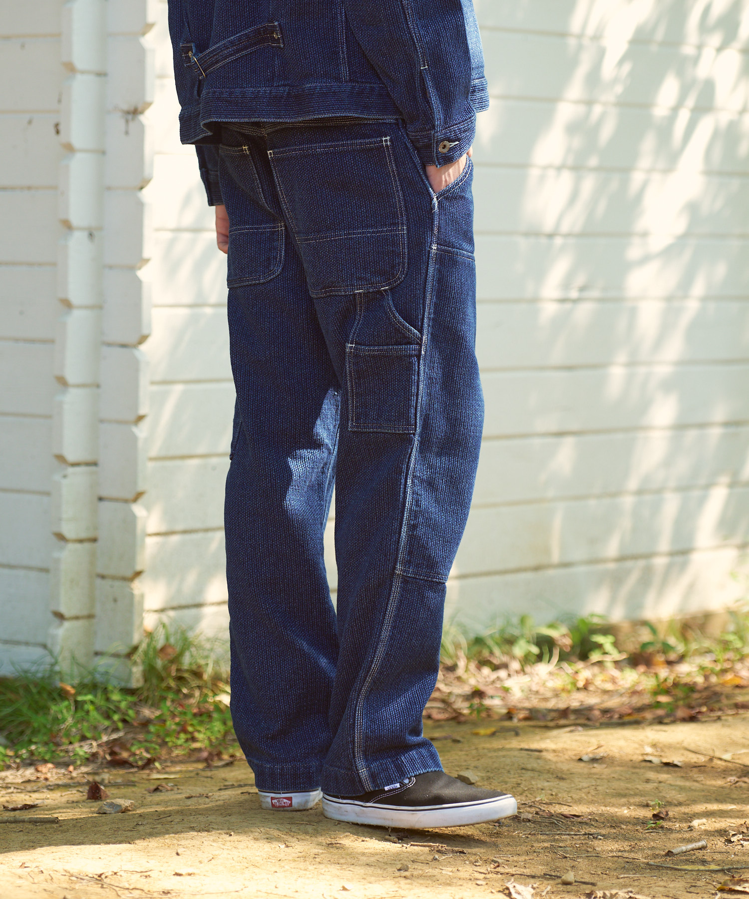 AOZORA 刺し子デニムダブルニーペインターパンツ (MENS)