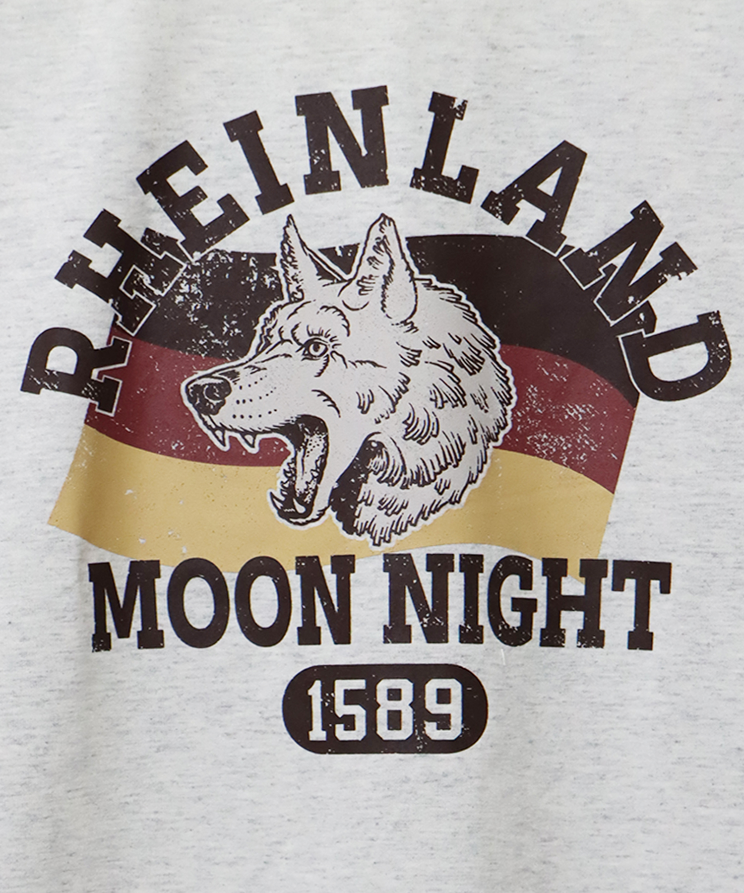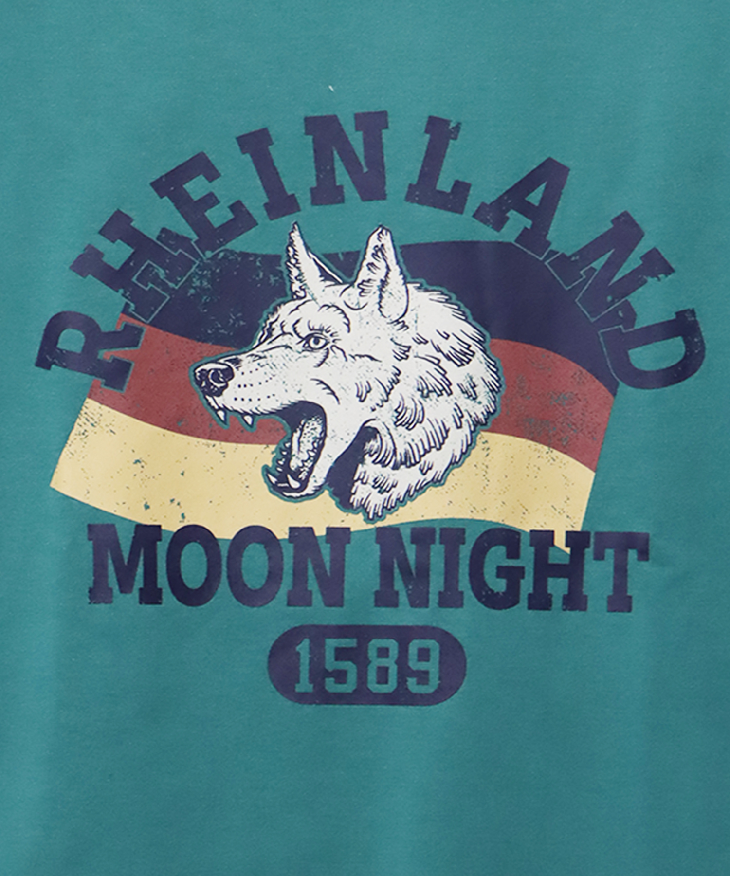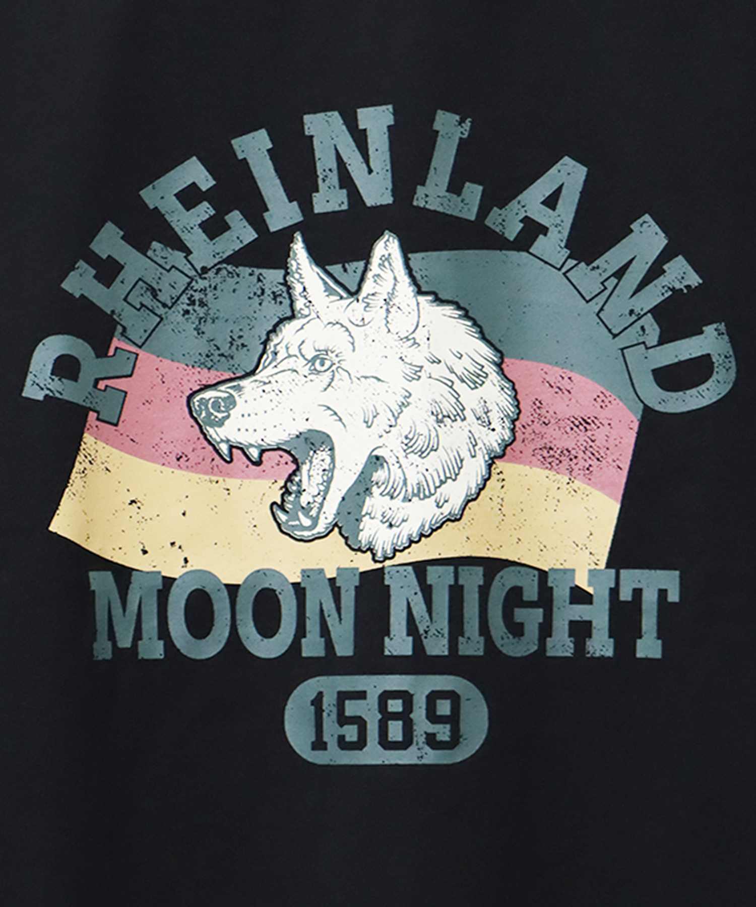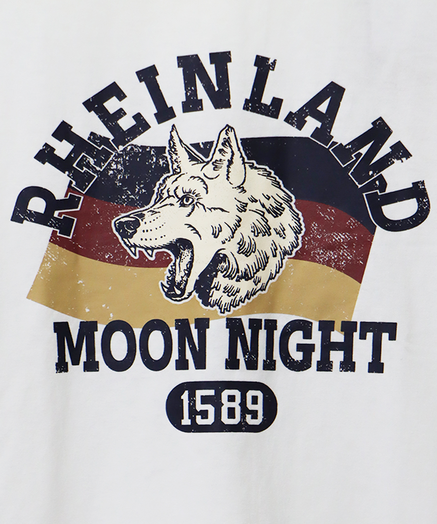 狼と鹿をモチーフにした、ヴィンテージライクなプリントデザインが目を引く1枚。