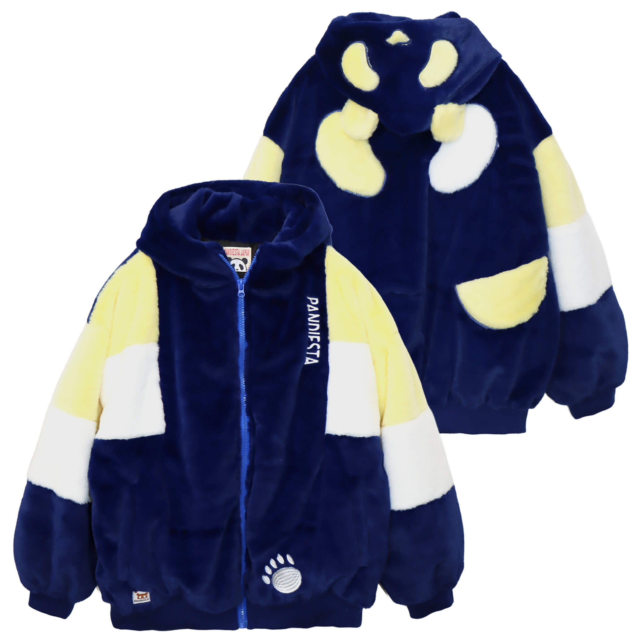 以前、フリース素材で製品化した人気アイテムをデザインソースに起用しており、背中一面に『PANDIESTA』というブランドを表現した一枚。全ての仕様は配色切替と刺繍を用いてデザインしています