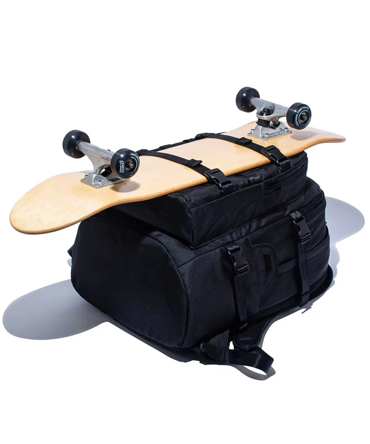 さらに、ドリンクボトルを収めやすいサイドポケットや、外側のストラップを活用してスケートボードなどのギアも取り付けられる機能性も魅力です。