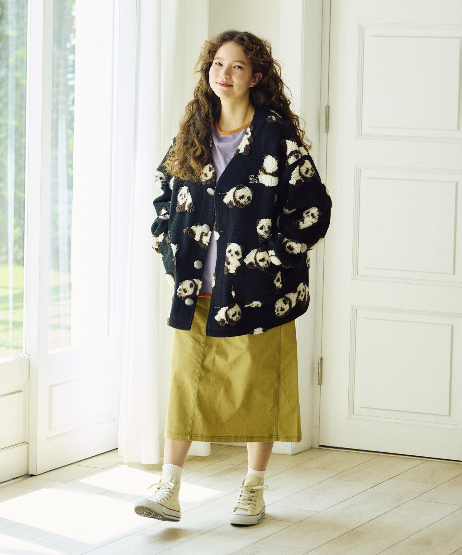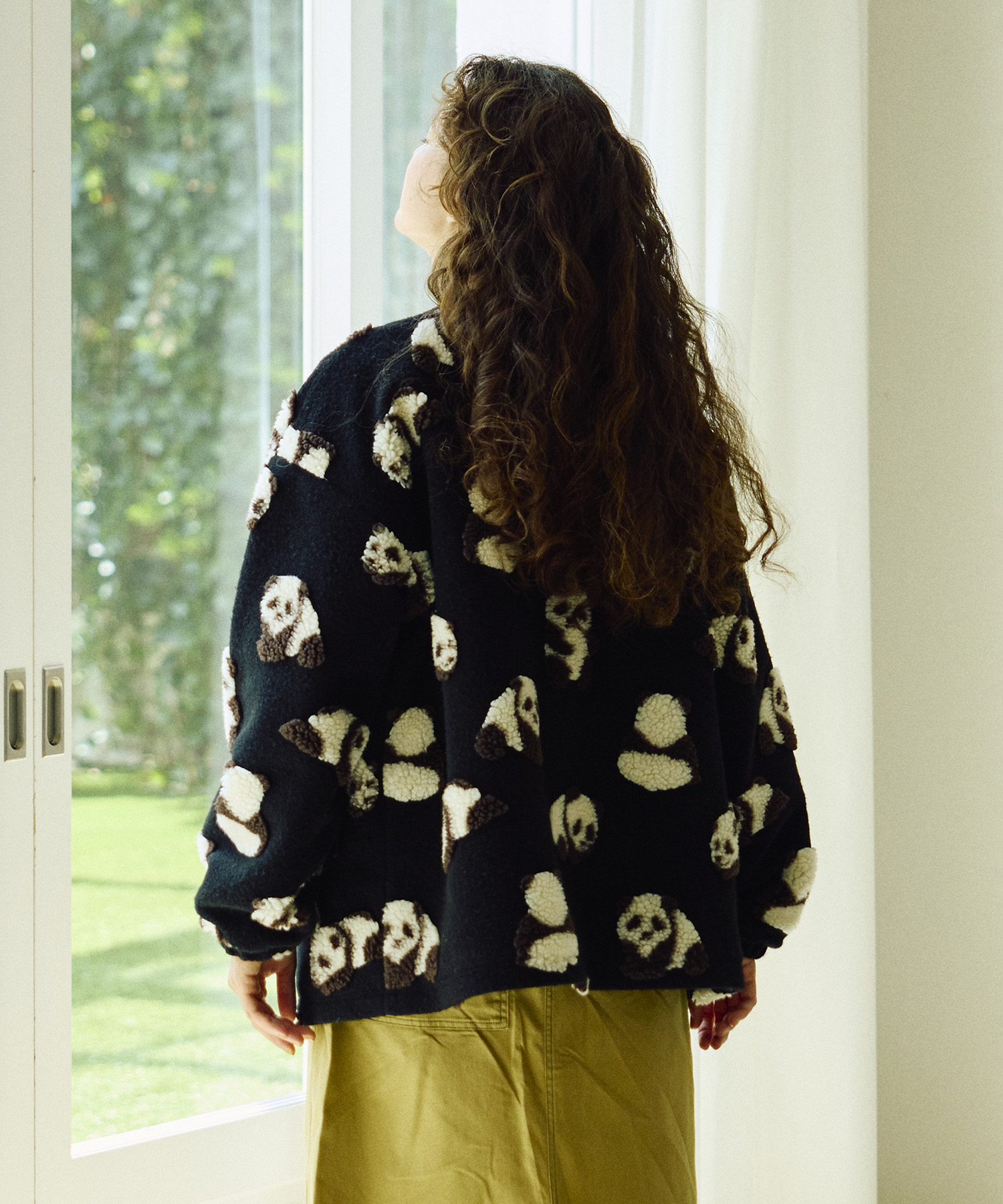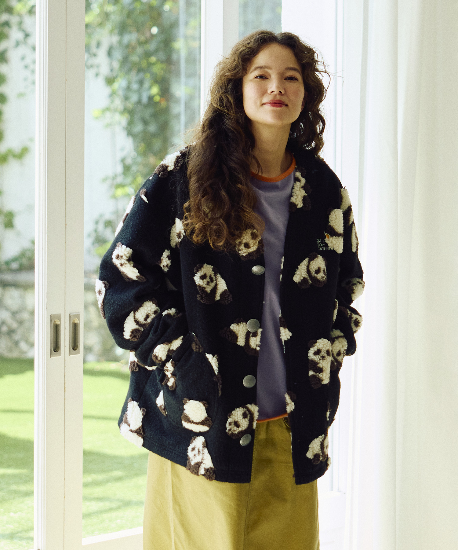 ゴースローキャラバンオリジナルのジャガードボアに、人気の【パンダ】&【ひつじ】柄が登場!やわらかな風合いと愛らしい柄が魅力のシリーズ☆裾に向かってゆるやかに広がるAラインシルエットが女性らしい印象のコンチョコート!