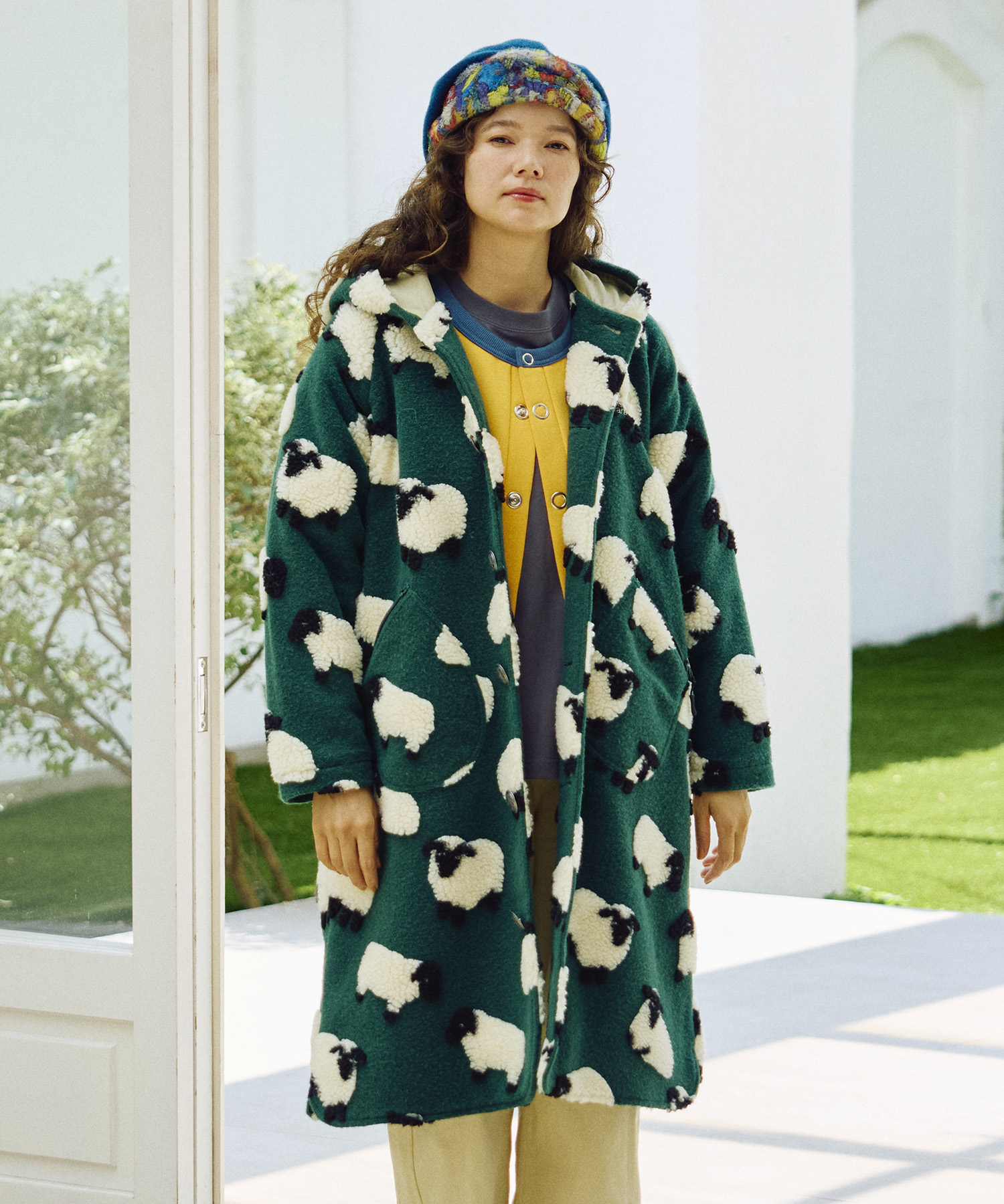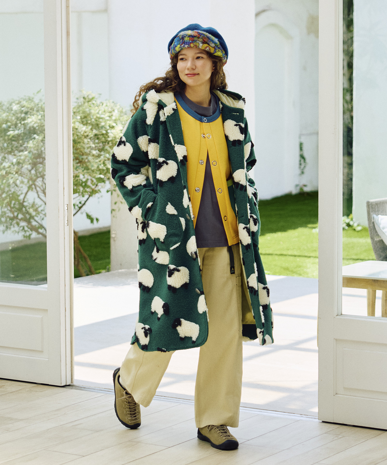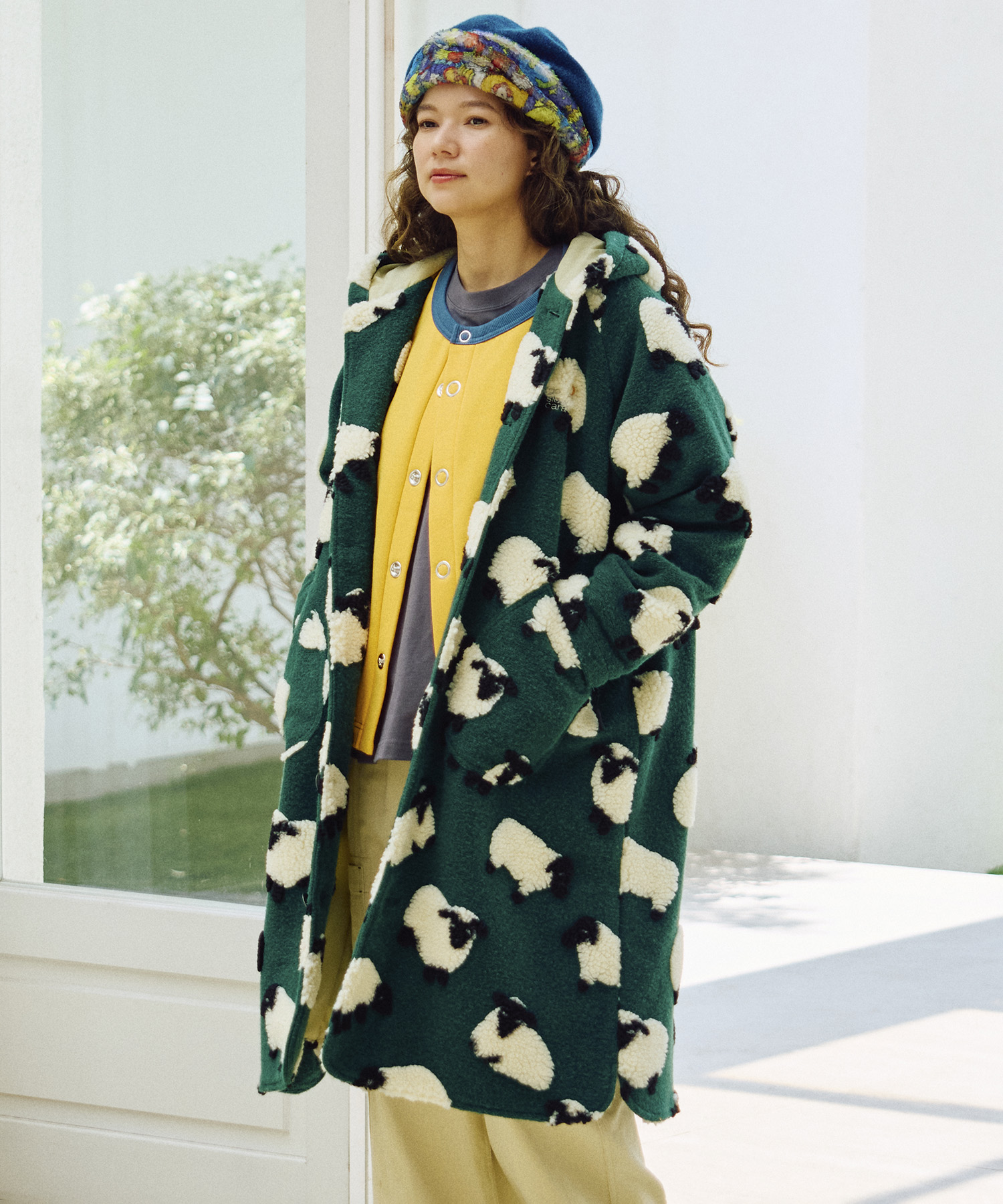 ゴースローキャラバンオリジナルのジャガードボアに、人気の【パンダ】&【ひつじ】柄が登場!やわらかな風合いと愛らしい柄が魅力のシリーズ☆裾に向かってゆるやかに広がるAラインシルエットが女性らしい印象のコンチョコート!