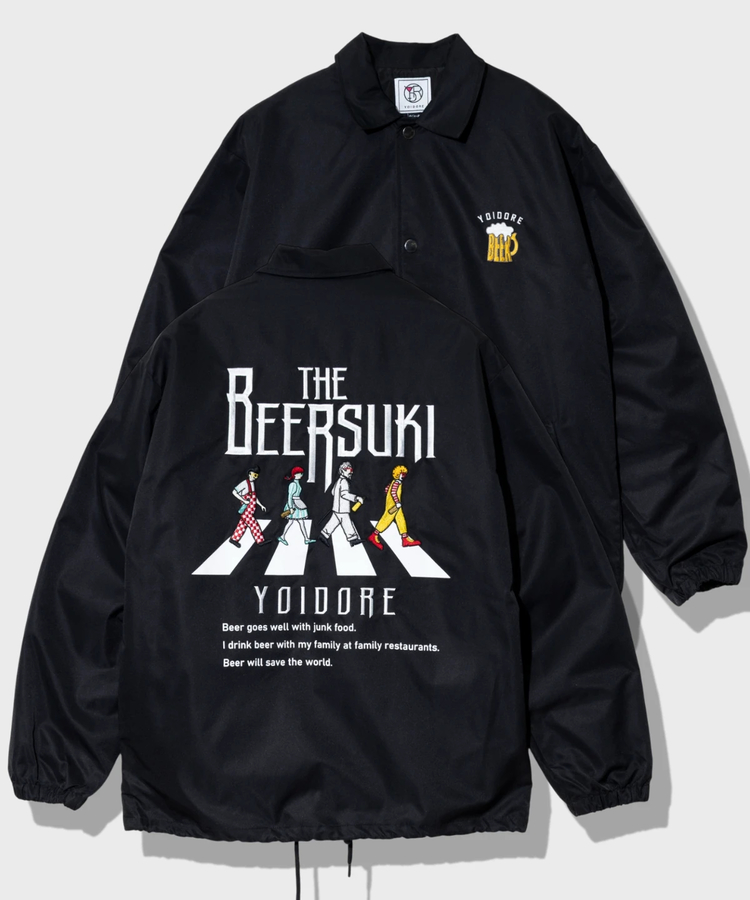 フロントには印象的なコラボロゴをプリントし、サイズ表記も「中ジョッキ・大ジョッキ」ではなく“1合・2合”という遊び心たっぷりの仕上がり。お酒好きにはたまらないユーモアとデザイン性を兼ね備えた1枚です。デニムやワークパンツと合わせて、肩の力を抜いた大人の“酔いどれスタイル”を楽しめます。