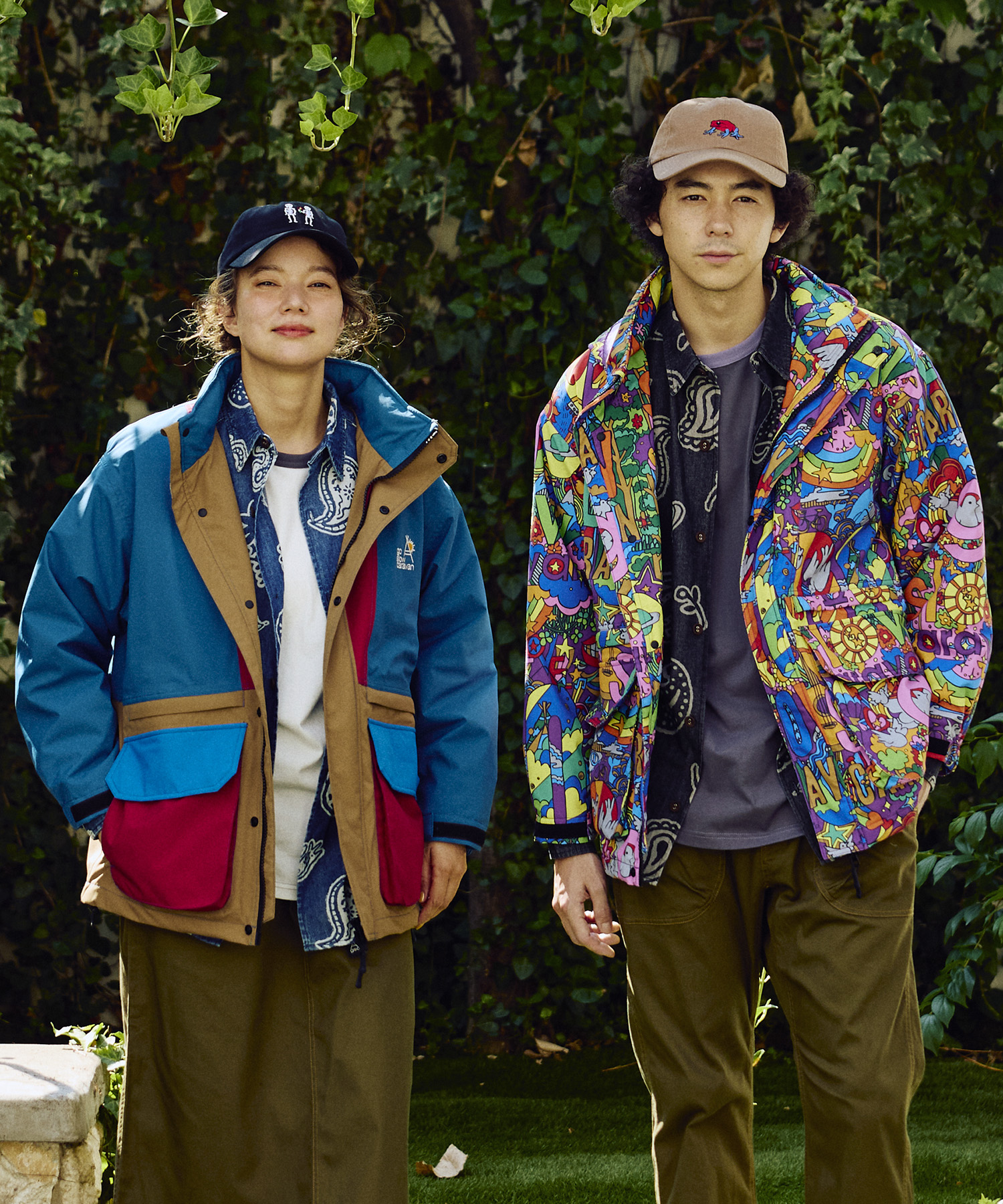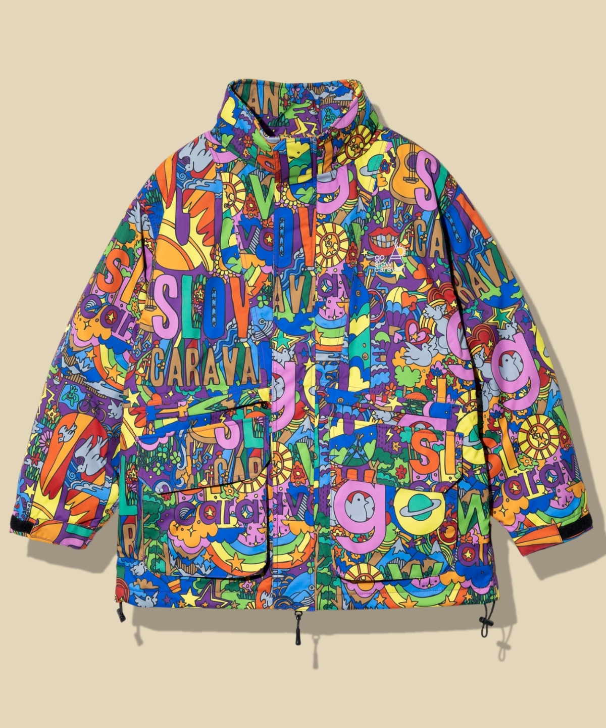 2レイヤークレイジー/総柄プリントフードインスタンドブルゾン (MENS/WOMENS)