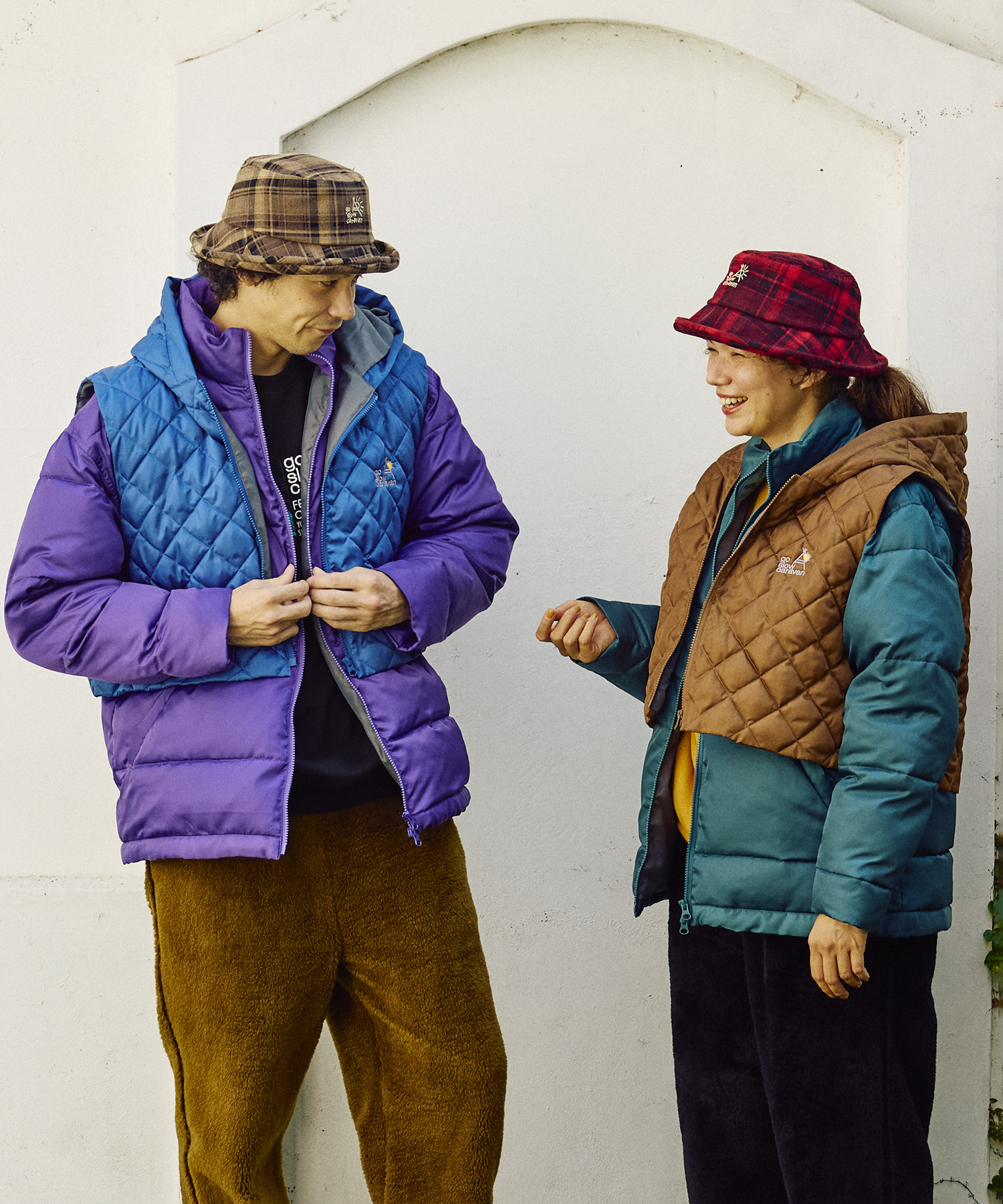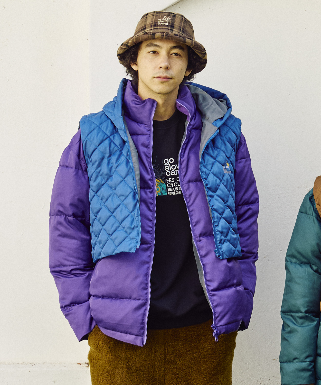高い保温性と耐久性を実現した米国アライド社のLOFTECH Eco(ロフテックエコ)をインサレーションに採用したパファージャケット。700FPの高品質ダウンと同等の保温力を持つ。ベストが着脱可能でジャケット、ベスト、レイヤードと3通りの着こなしが楽しめます。