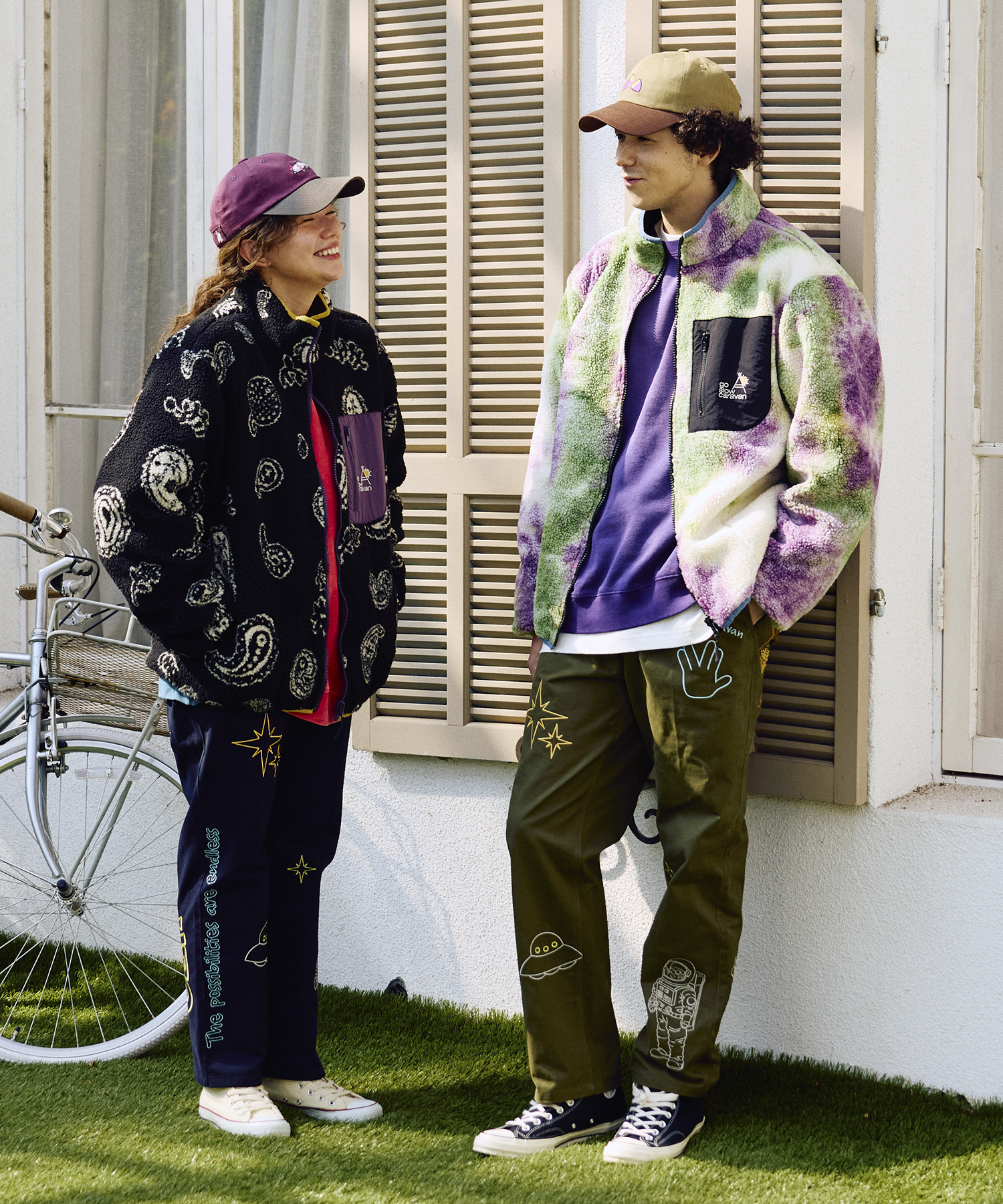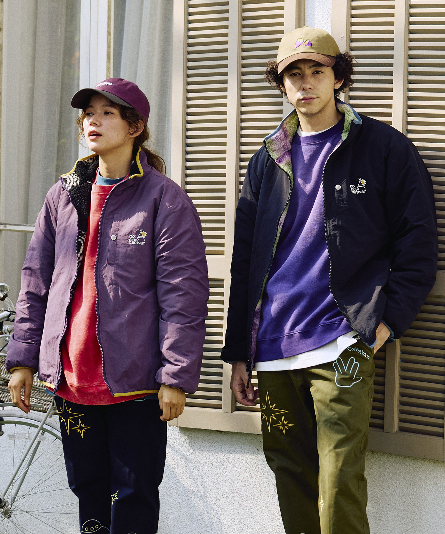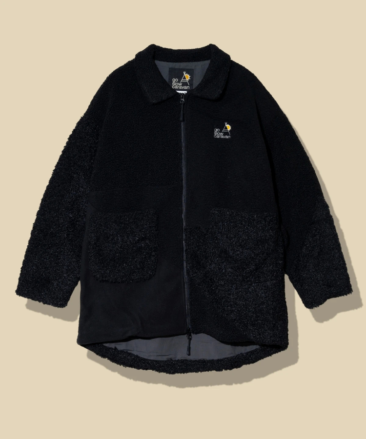 表側は総柄のボア×裏面は無地のナイロン。その日の気分、コーディネートで着用できるゴースローキャラバンらしいインパクトがあるアウターが登場です!