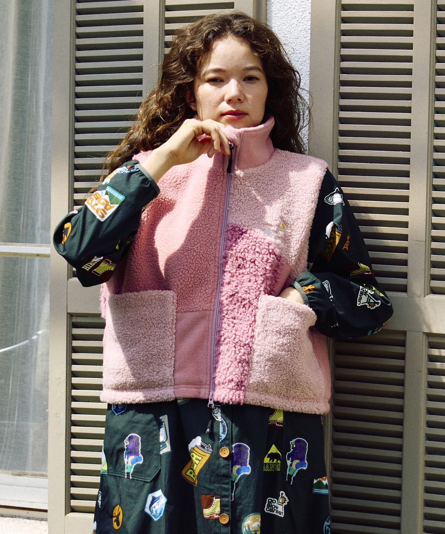 ボア×フリース パッチワークショートベスト (WOMENS)