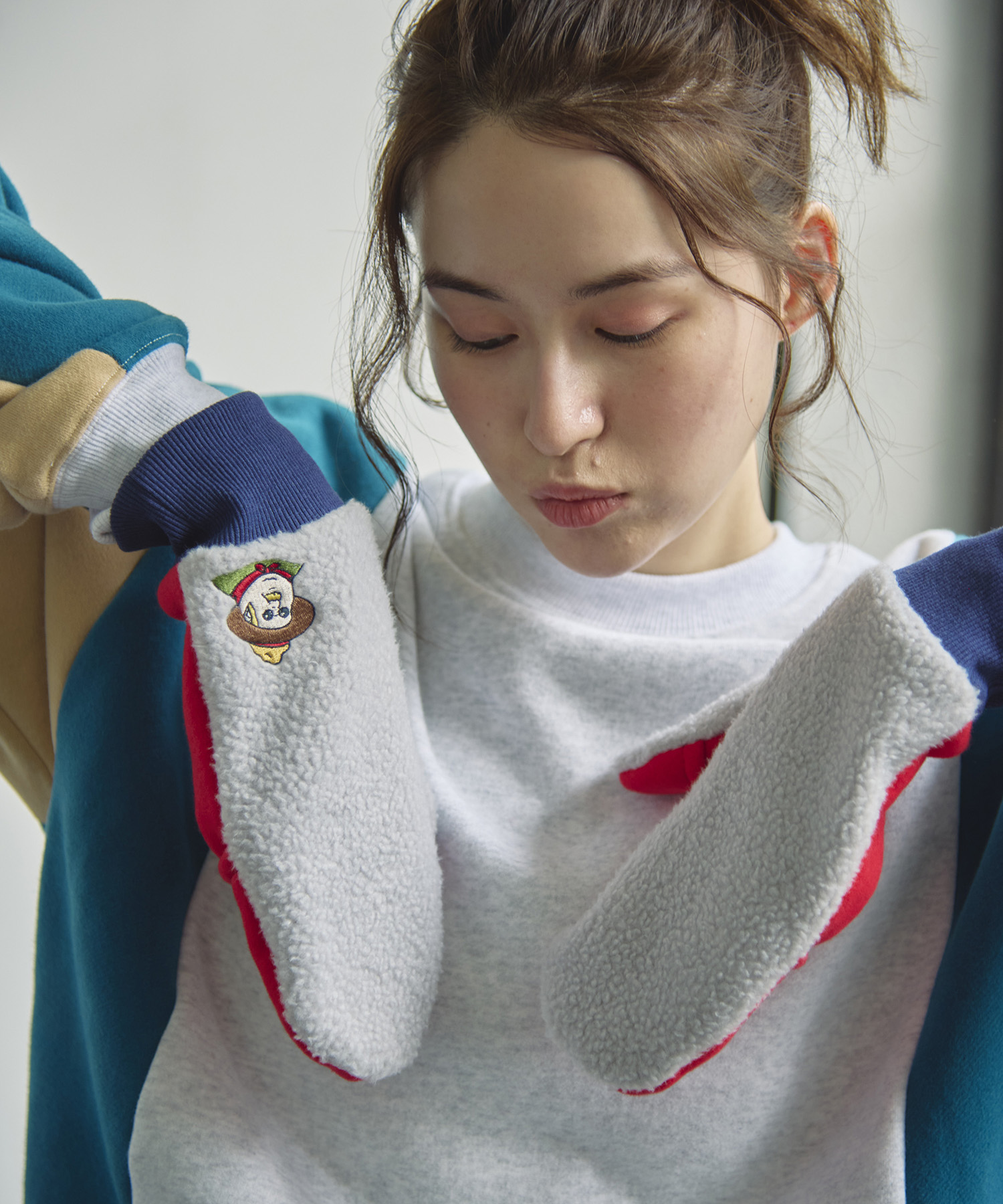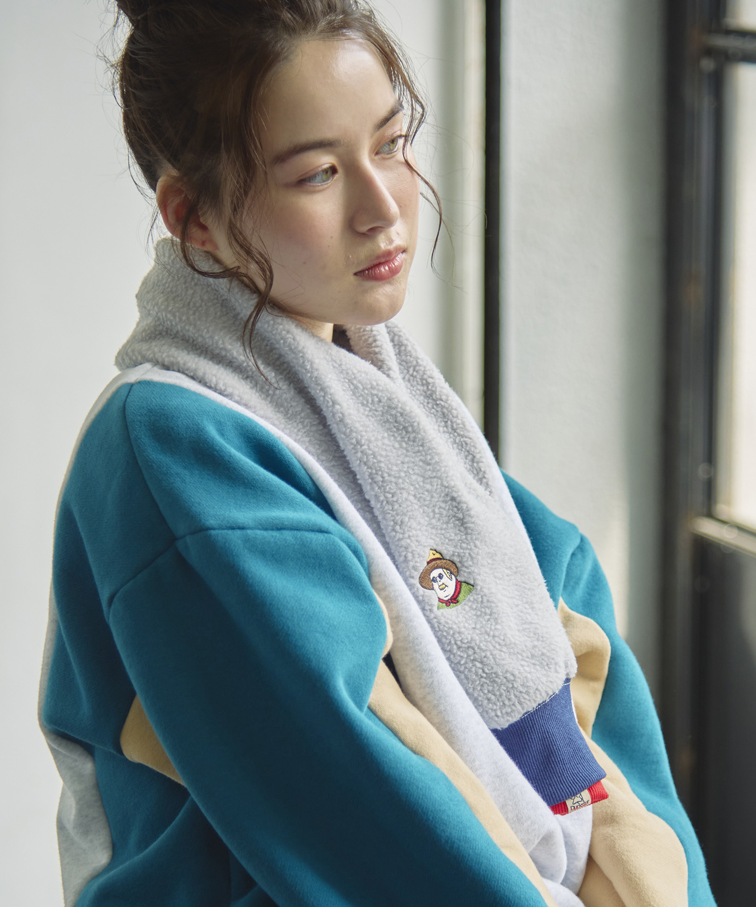スウェットの袖!?をモチーフにしたポップでキャッチーなマフラー。スウェットの袖デザインが目を引く4色展開のPOPなマフラーです。コンパクト設計でどんなアウターにも着用可能。お子様から大人まで楽しめるアイテムです。