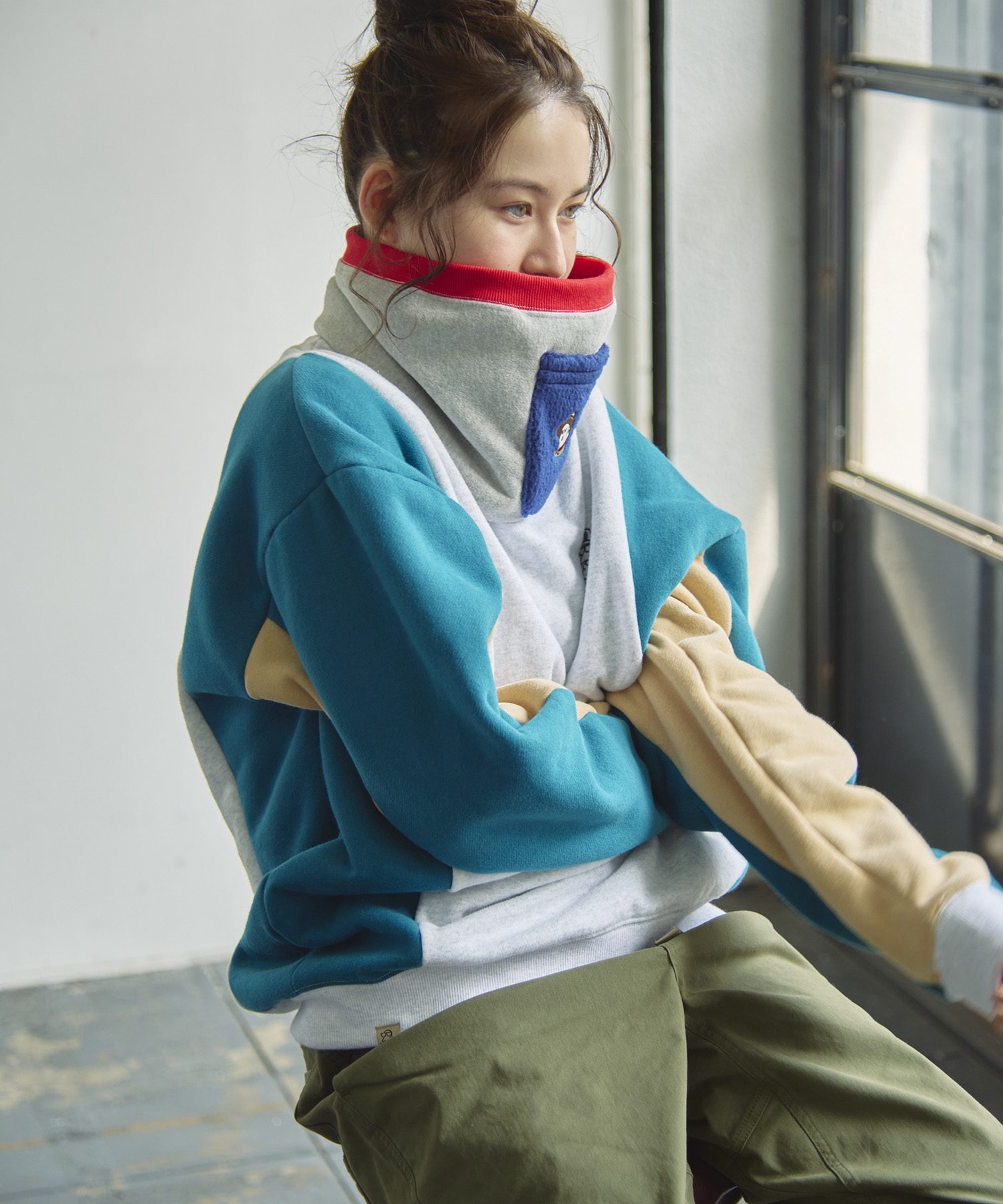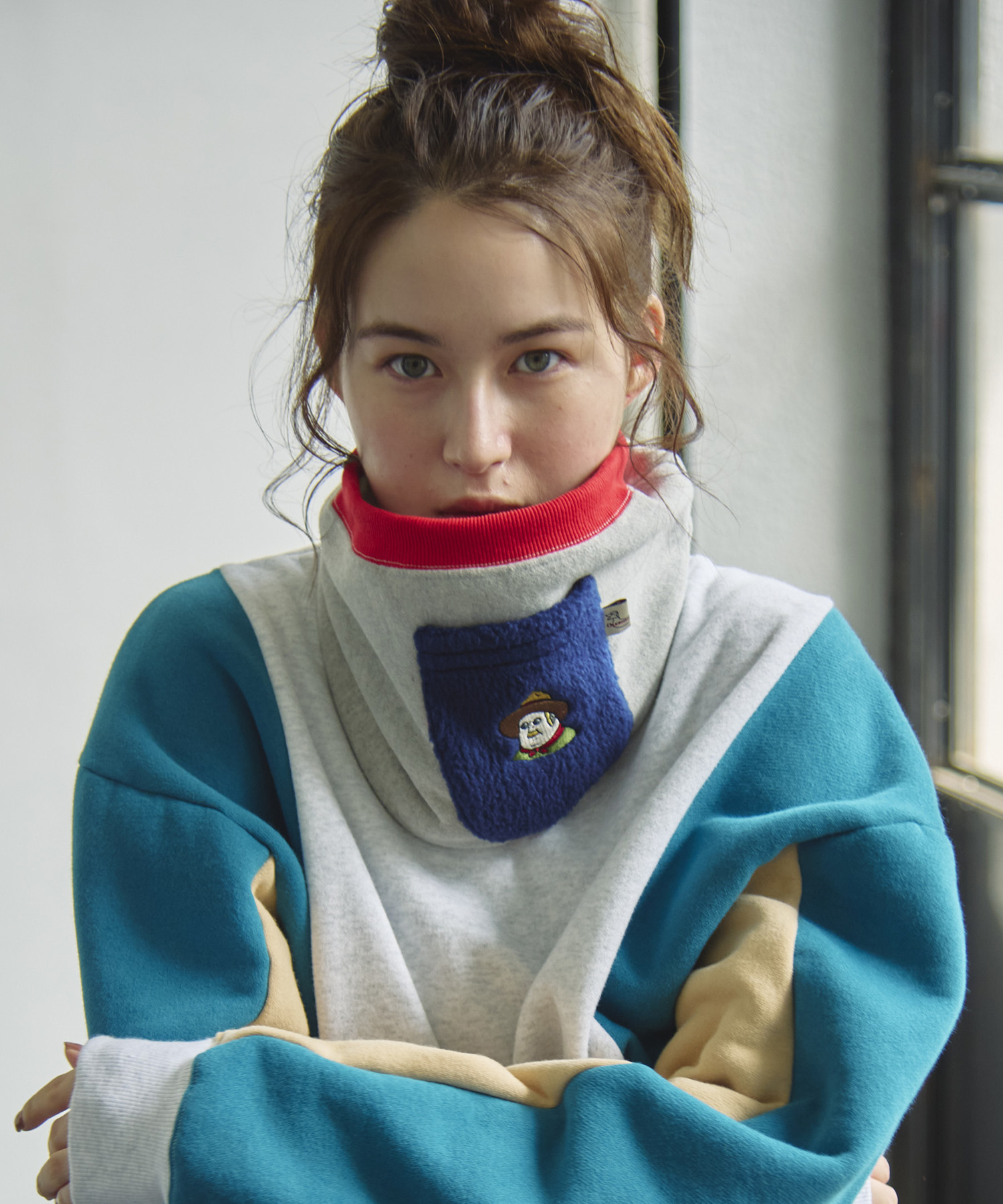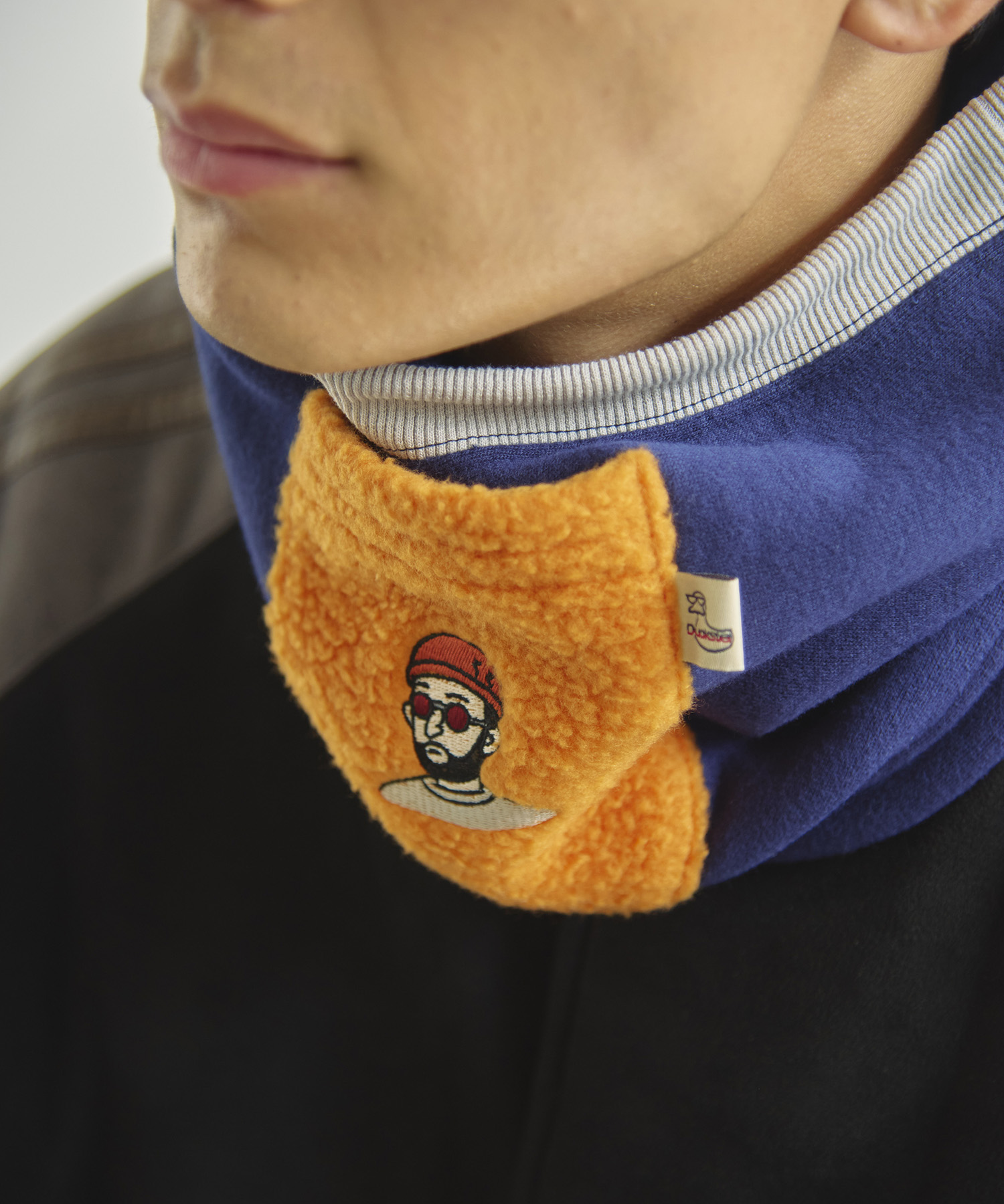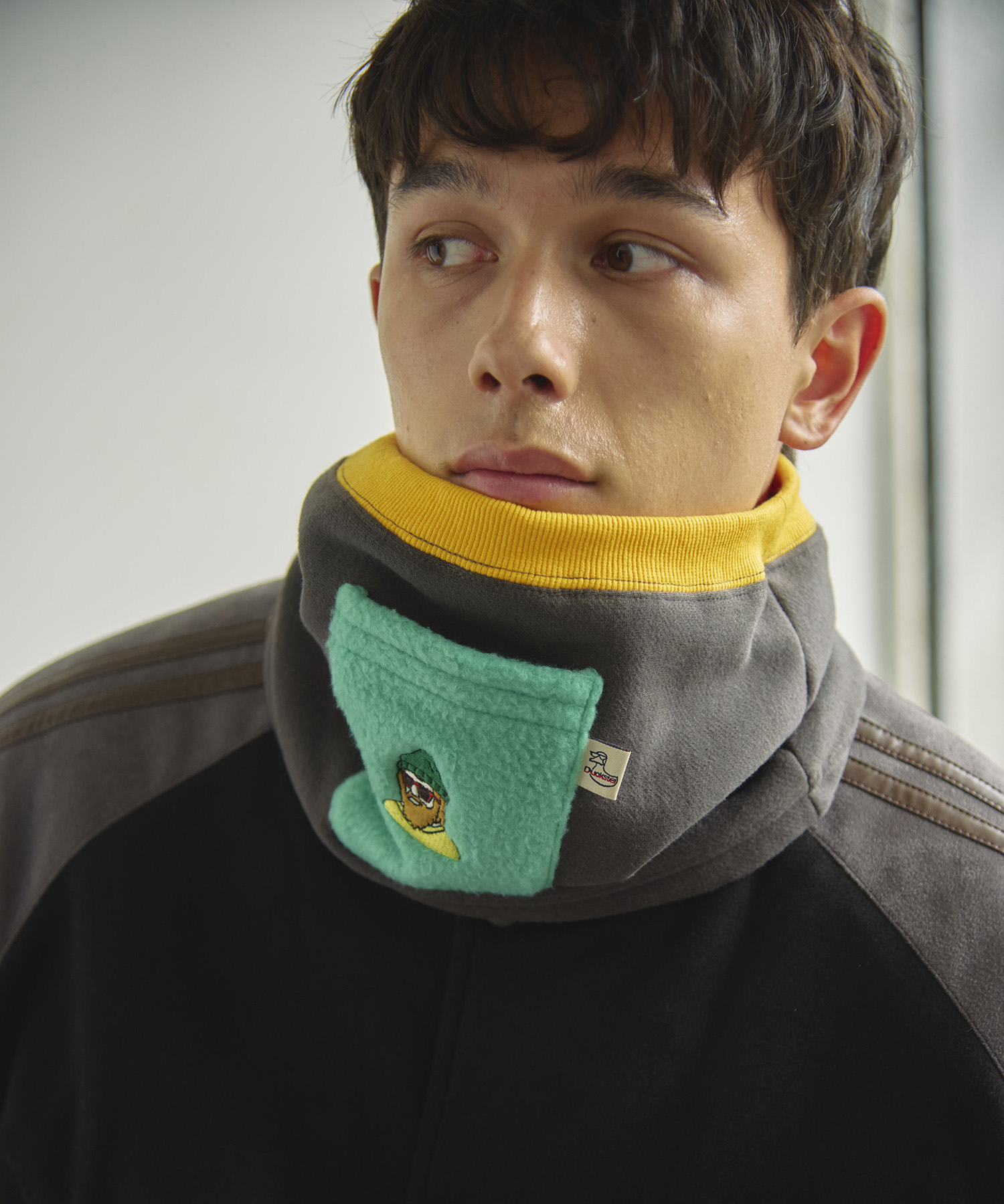 スウェット素材に、リブ切替と小物が入れられる便利なポケットを配置したネックウォーマー。ポケットには“OJISAN”のワンポイント刺繍をあしらい、ほっこりとした遊び心をプラス。カジュアルなスタイリングにも馴染む、デイリー使いしやすいアイテムです。