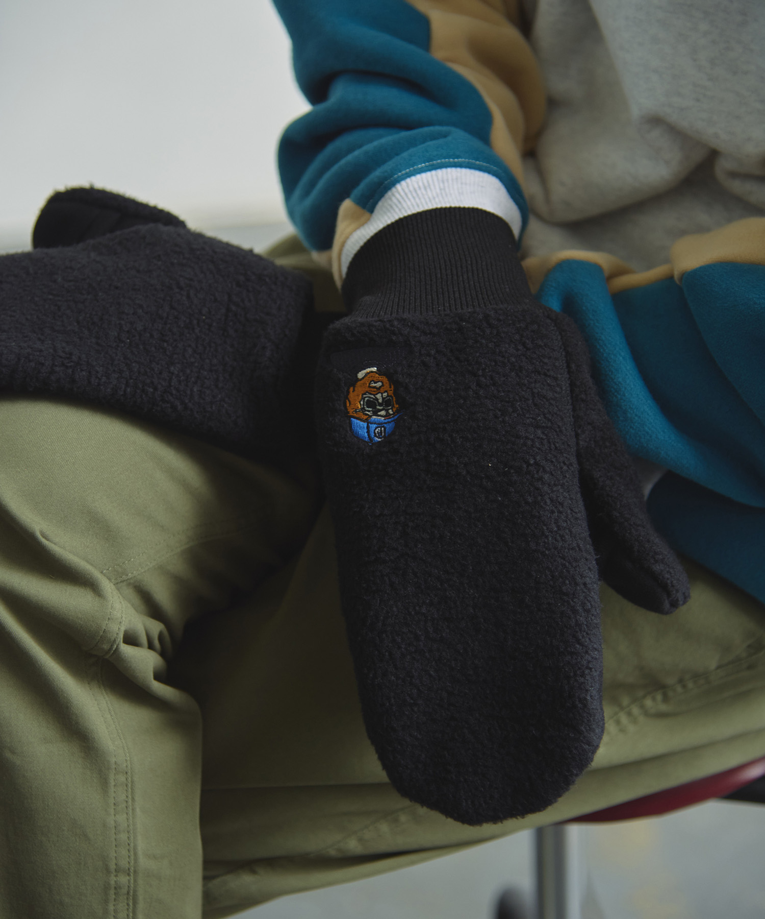 スウェット素材で仕上げた、やわらかく着け心地の良いミトン。指先部分はフラップを外すと指が出せる2WAY仕様で、スマホ操作などの細かな動作にも便利です。フロントには“OJISAN”のワンポイント刺繍を施し、遊び心のあるアクセントに。