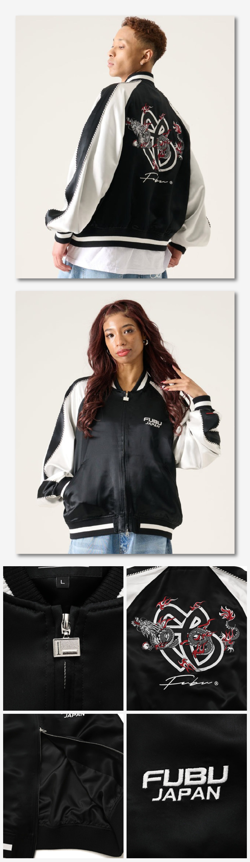 ストリートと東洋的モチーフを融合させたリブ付きスーベニアジャケット。
