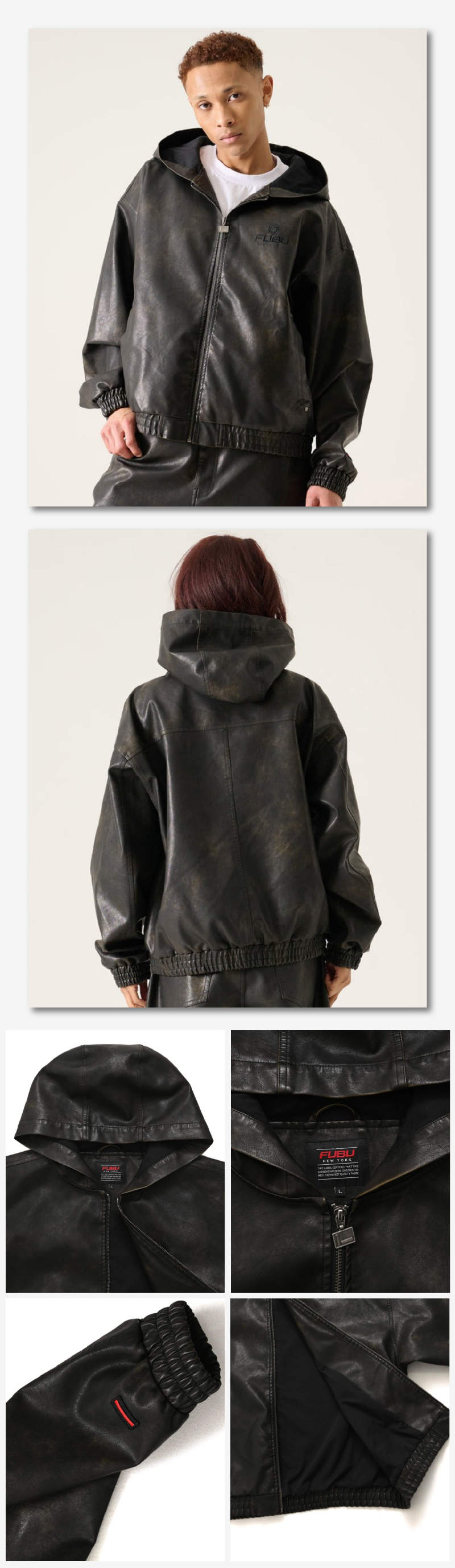 FUBU/フブ Faux Leather Short Hooded Jacket