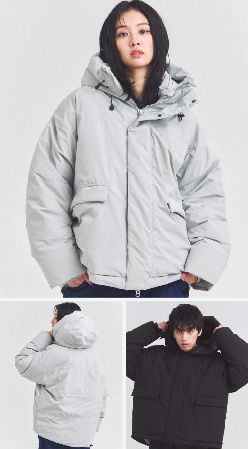 タスラン素材を用いて防風性を高め、寒い日のアウターとして頼もしい中綿入りフードジャケットです。フード付きなので風の強い日や屋外での移動にも安心。表素材から内側の中綿まで設計された防寒仕様ながら、見た目はすっきりと仕上がっており、ブルゾン感覚で羽織ることができます。 |