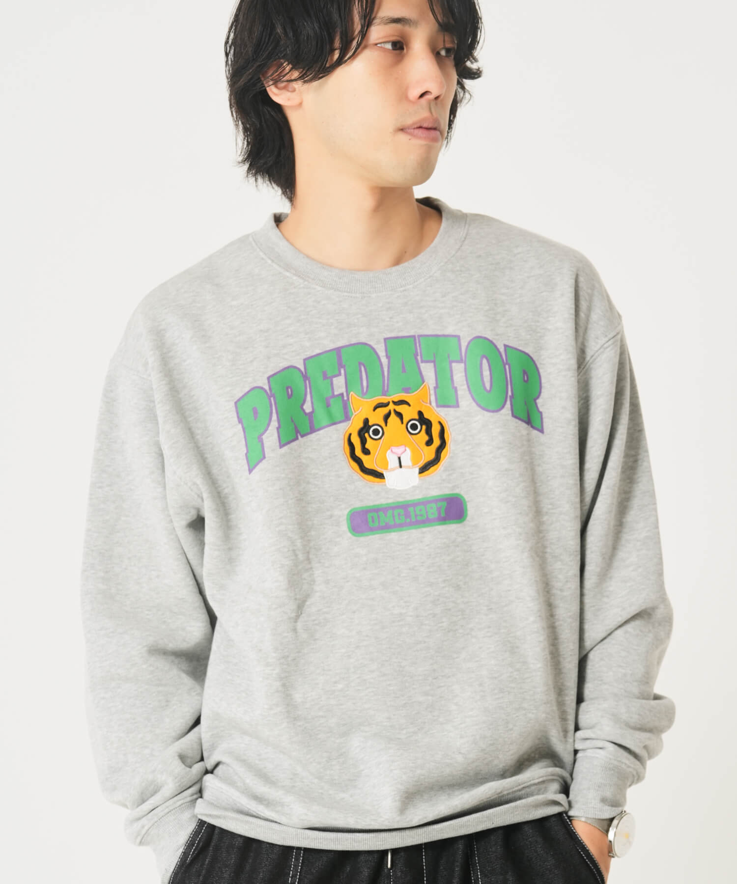 ・裏起毛カレッジワッペンアニマル柄トレーナー 50%OFF→¥2,475