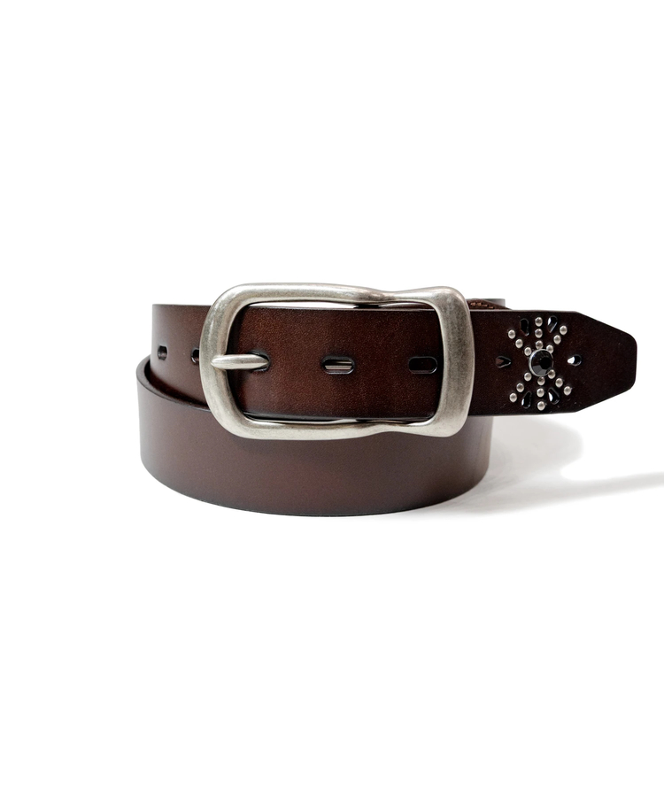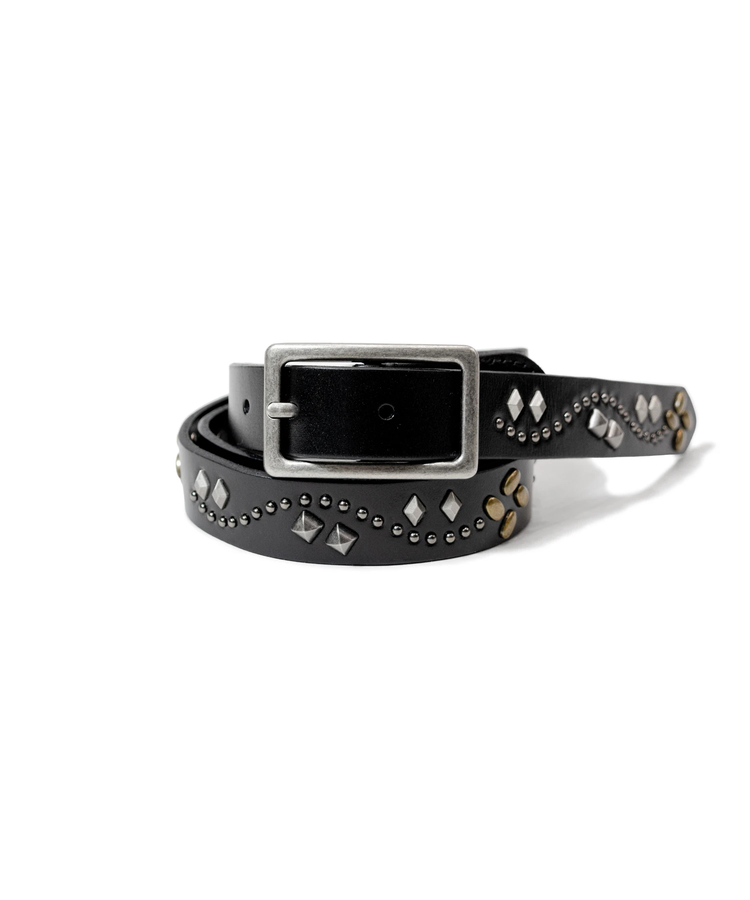 一本通すだけで腰元から全体の印象をガラッと変えてくれる、主役級のスタッズベルトです。