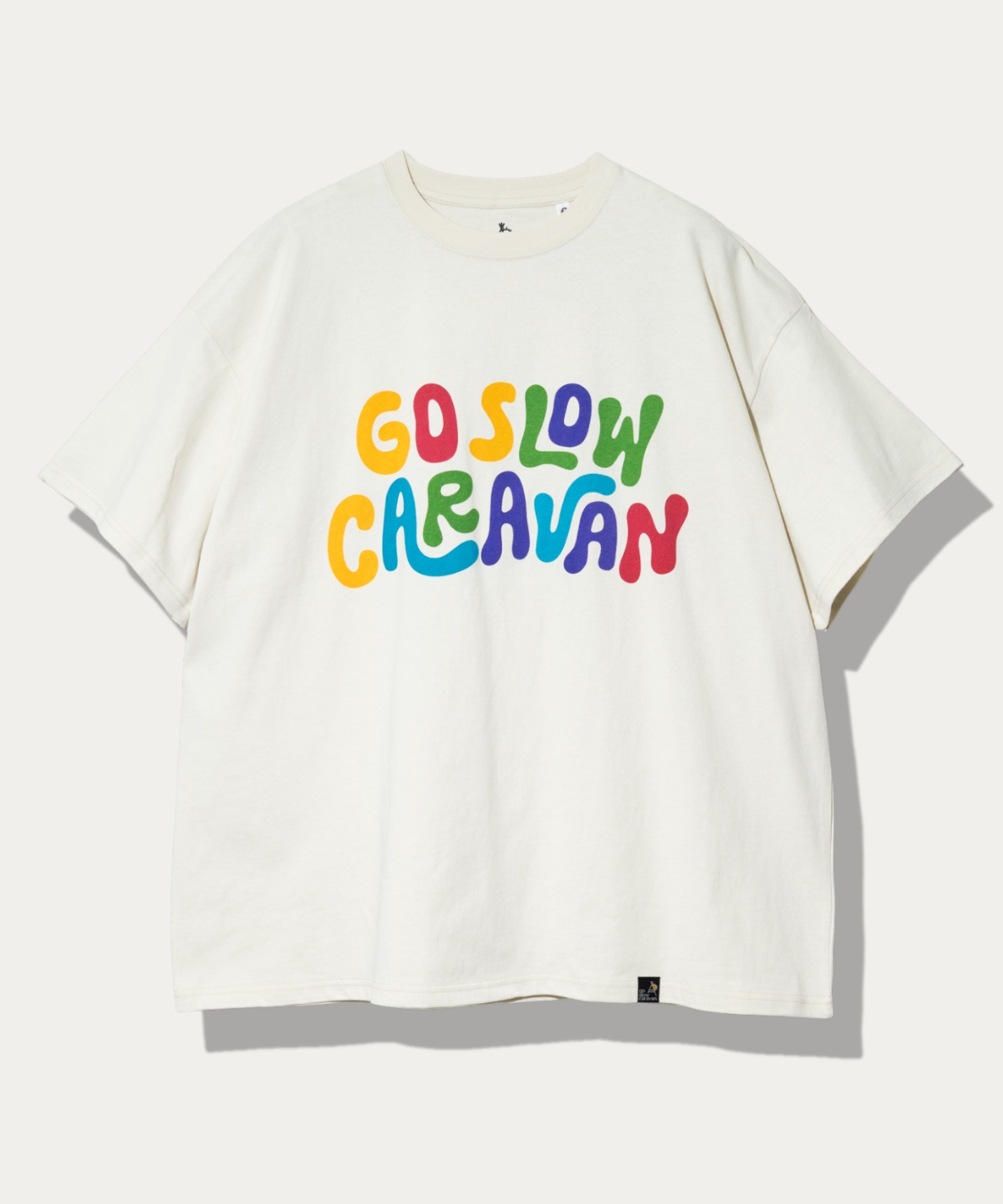 身幅68cmのワイドなシルエットでユニセックスとして着用可能なBIGTEE。ヒッピーなロゴをプリント。バックプリントには反転した同デザインをプリント。