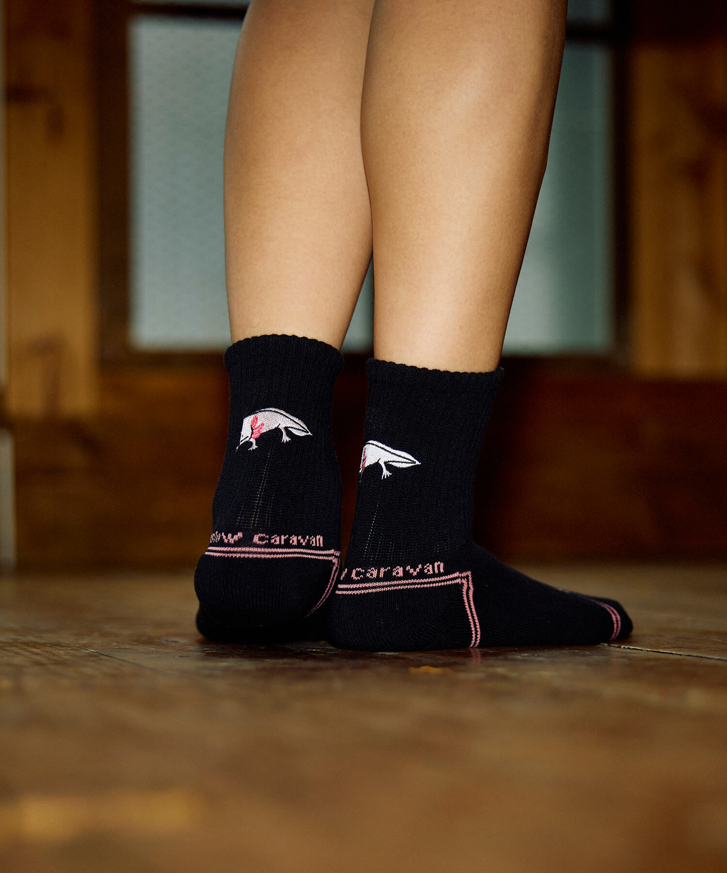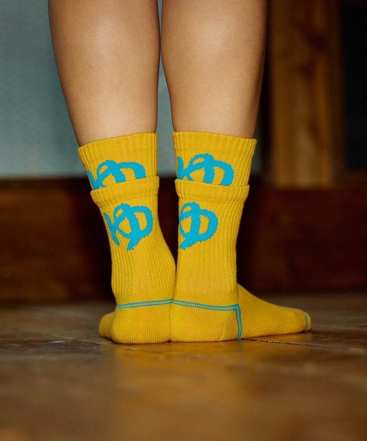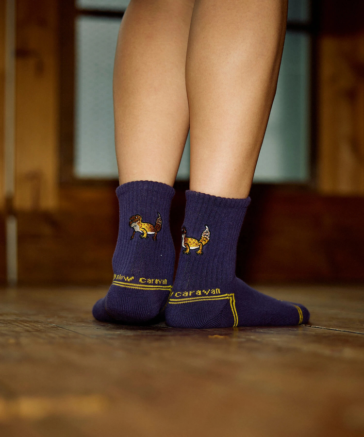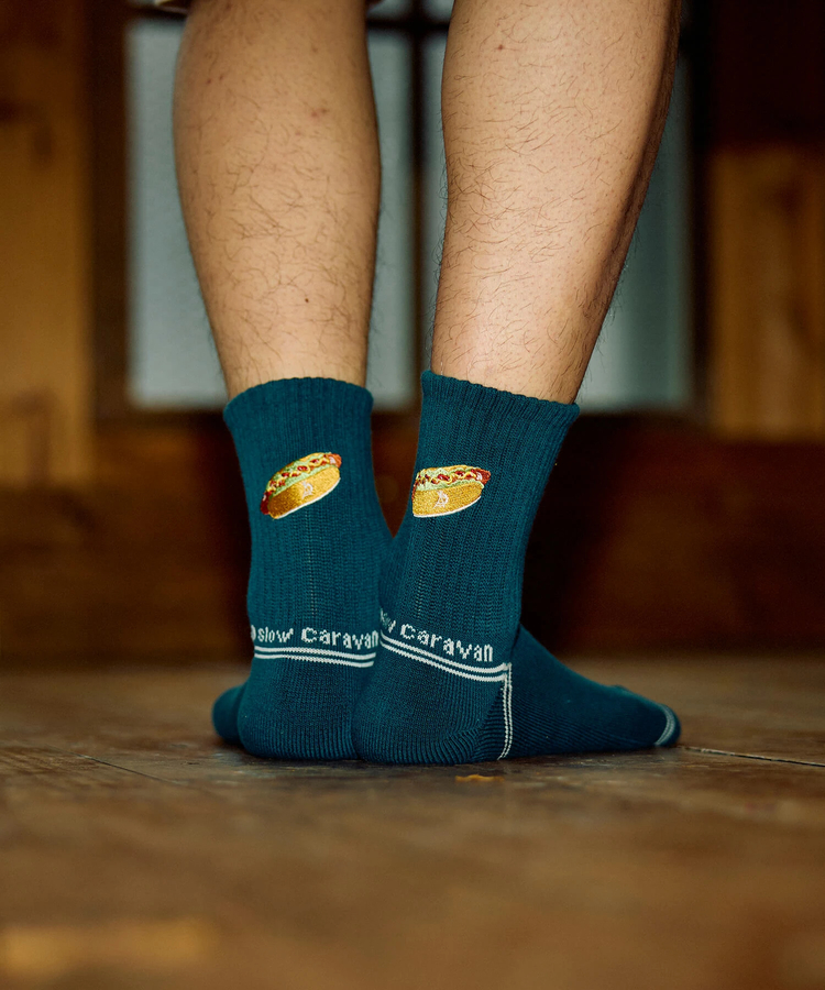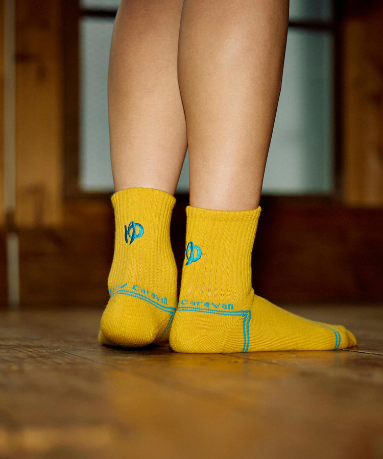 ゴースローキャラバンのアイコンを刺繍したクウォーターソックス☆そしてゴースローキャラバンのアイコンをジャガードで表現したレイヤードリブクルーソックスが登場!まるで2枚重ねて履いているように見えるソックスです♪