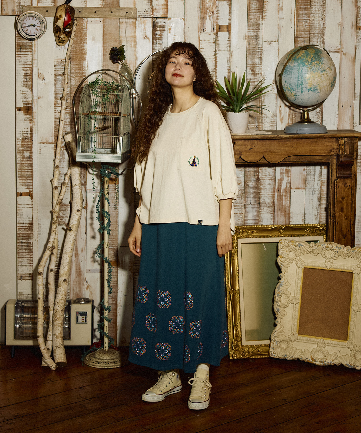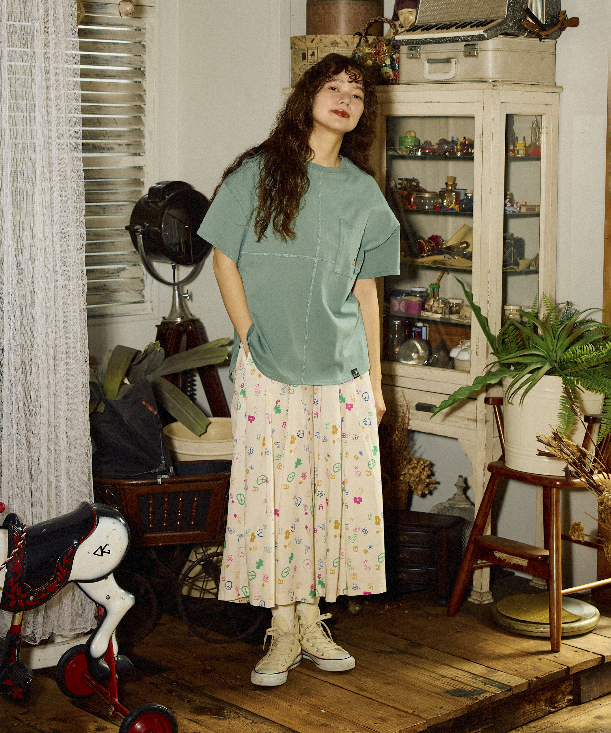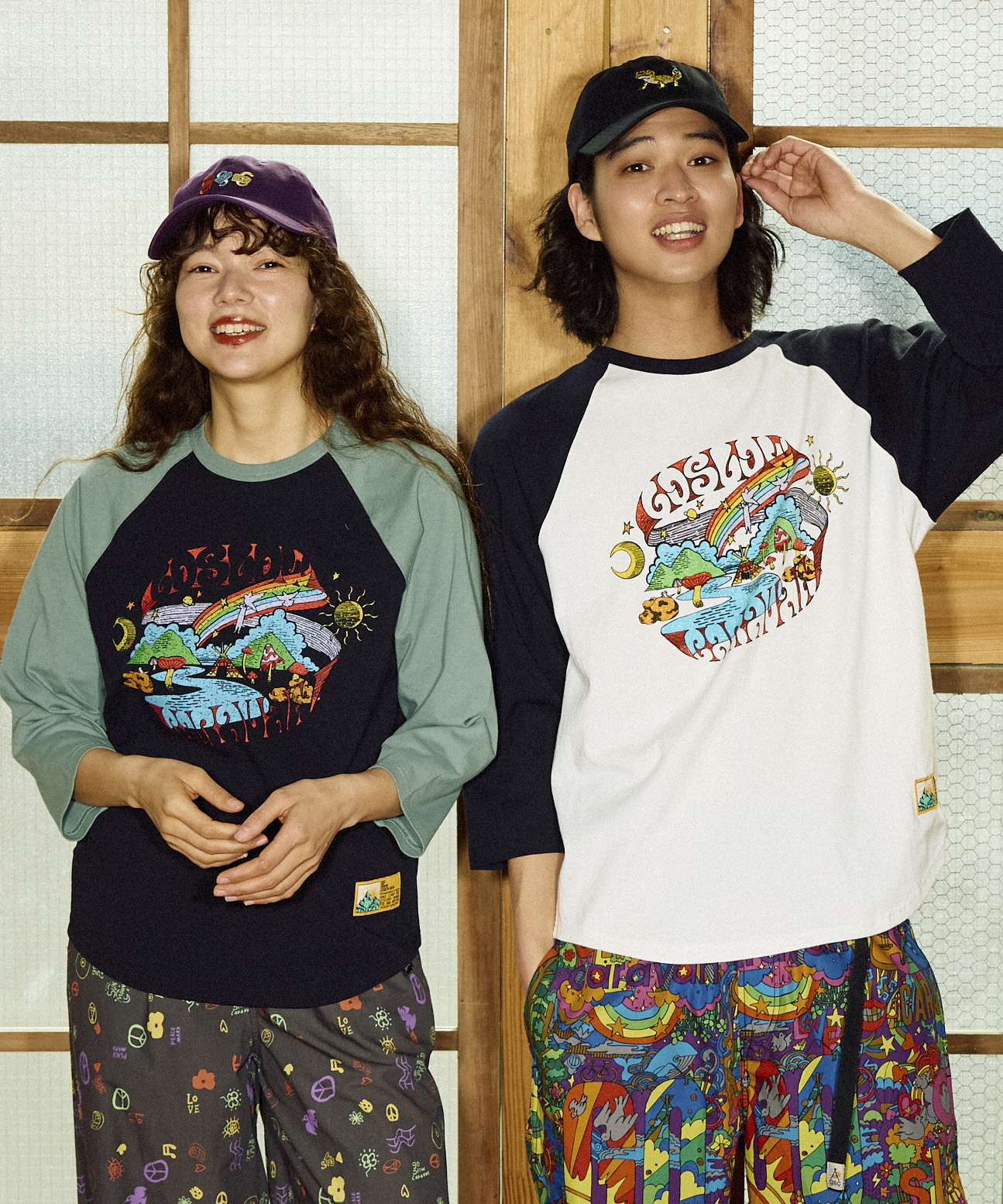 フロントには、シーズンテーマでもあるヒッピーライクなムードを落とし込んだ“go slow caravan”の世界観を表現したオリジナルグラフィックをプリント。自然や旅を感じさせるモチーフをポップに描き起こし、コーディネートの主役になる一枚に仕上げています。