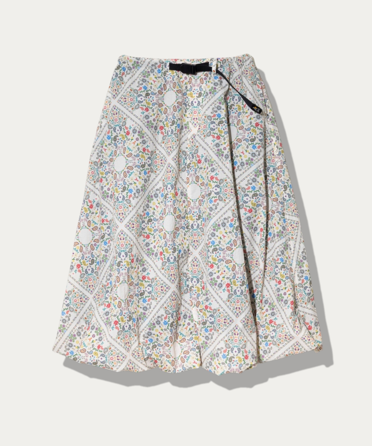ナイロン×コットン生地に、オリジナルペイズリー柄をプリントしたバルーンスカート。軽やかな素材感と、裾に向かってふんわり広がる丸みのあるシルエットが魅力です。
