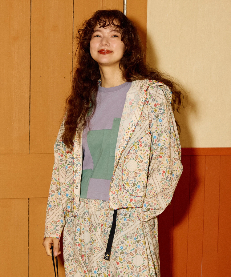ハリ感もありつつ透け感もあるナイロンコットン素材にゴースローキャラバンオリジナルのペイズリー柄をプリントしたライトなミドル丈のパーカージャケット&ふわっとしたシルエットがかわいいバルーンスカートが登場♪