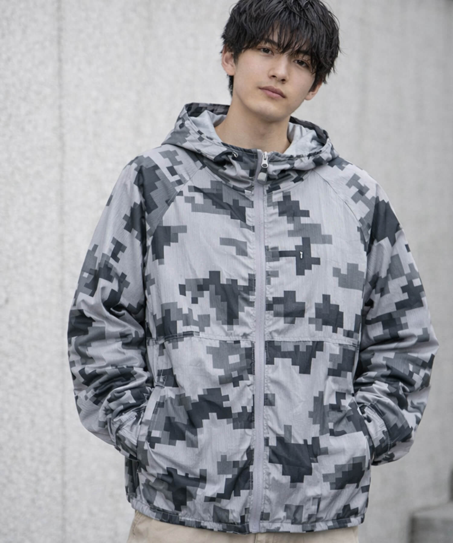 ・カットサッカーカモフラ柄ジップパーカー 2柄 ¥5,940(税込み)