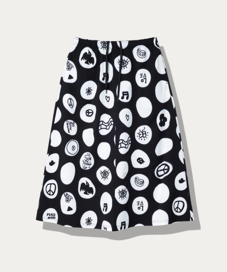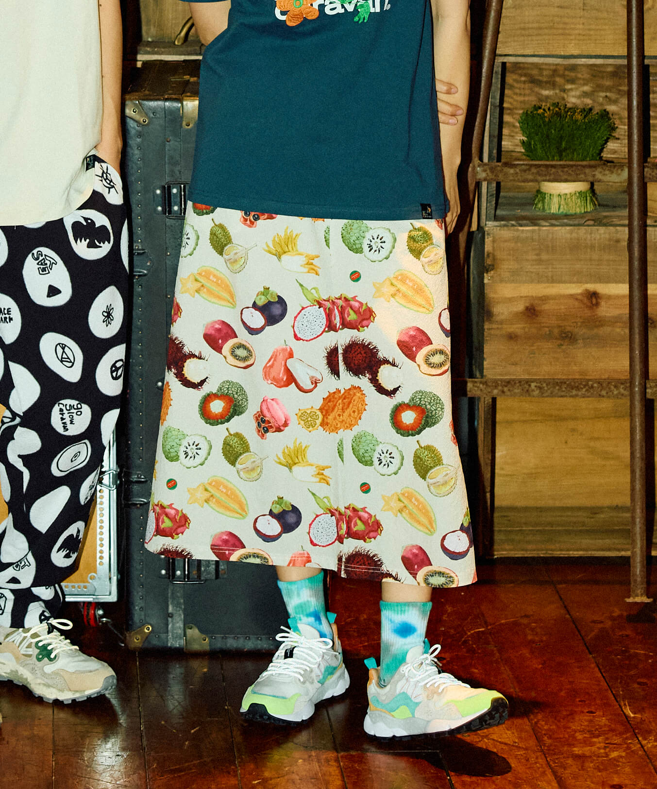 軽やかな素材感と華やかな総柄デザインで、シンプルなトップスと合わせるだけでコーディネートが完成。デイリーからレジャーまで幅広く活躍する一枚です。