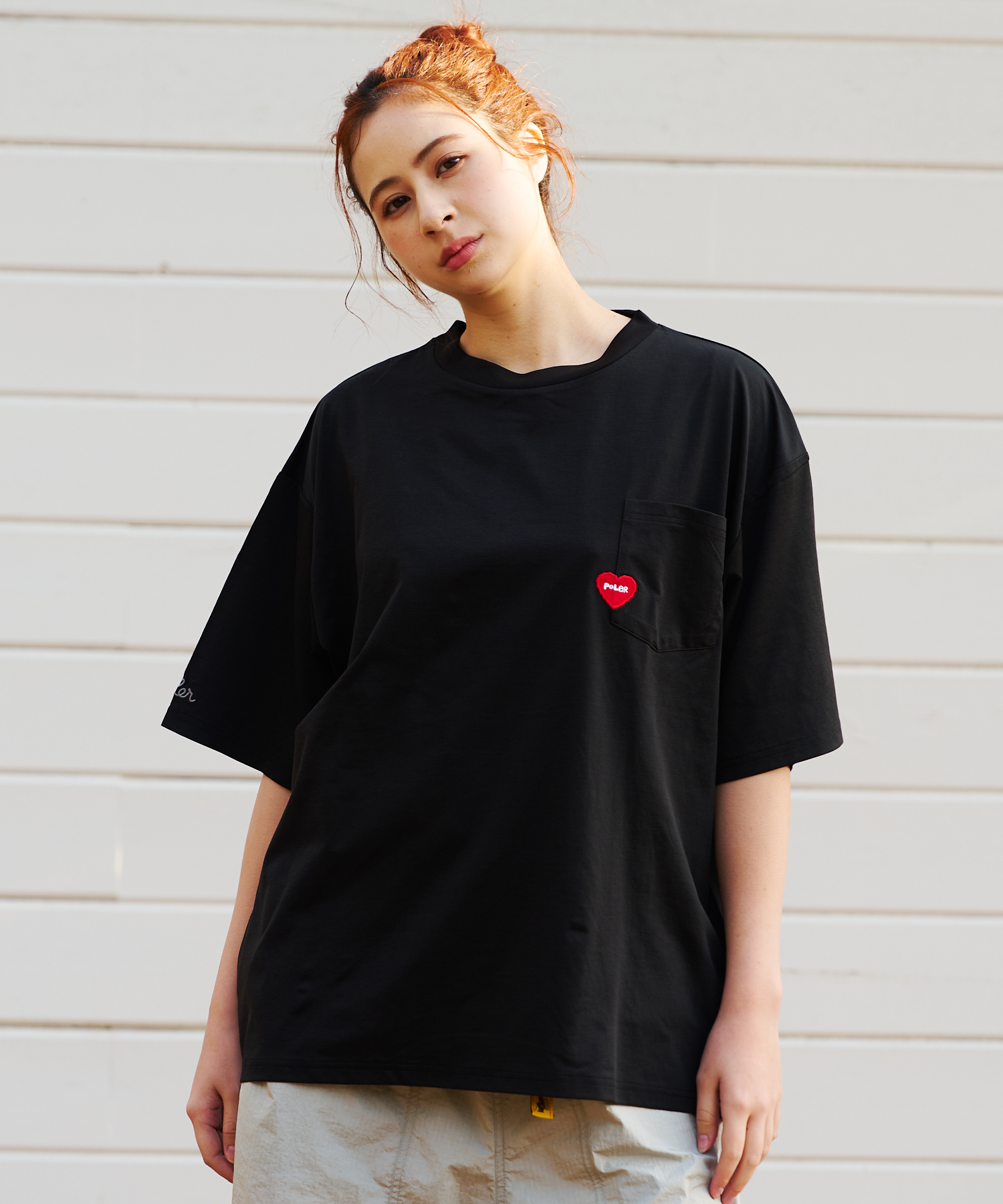 人気のハート刺繍TEEがアップデートして登場!生地に吸水速乾のQUICK DRY素材を採用した、これからの暑い季節やアクティブなシーンにも対応した別注TEEになっております。背中のロゴプリントは今季も大きくプリントしています。