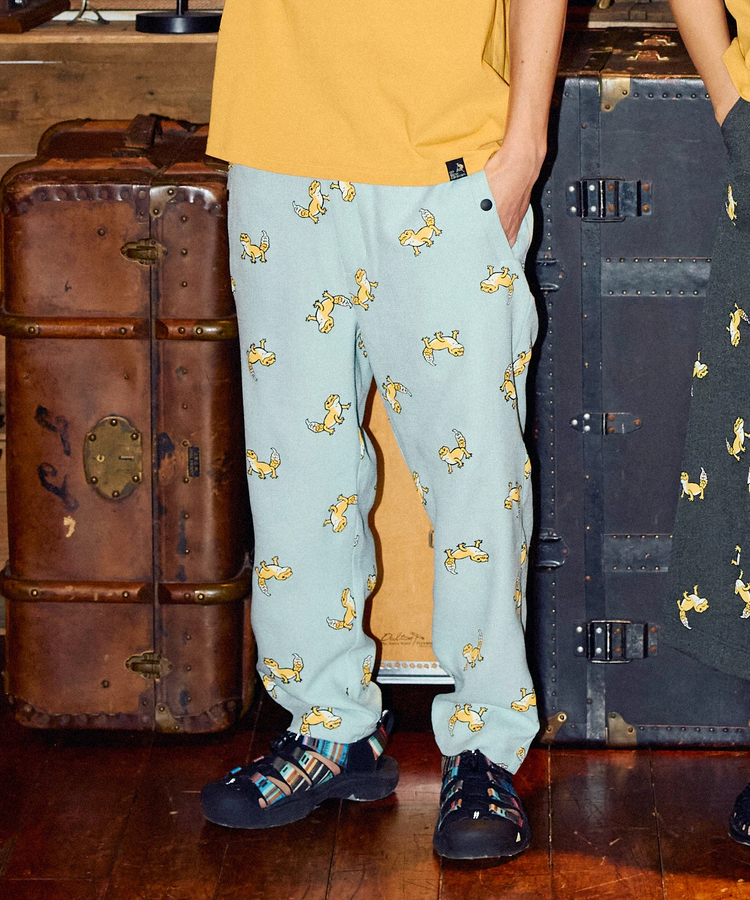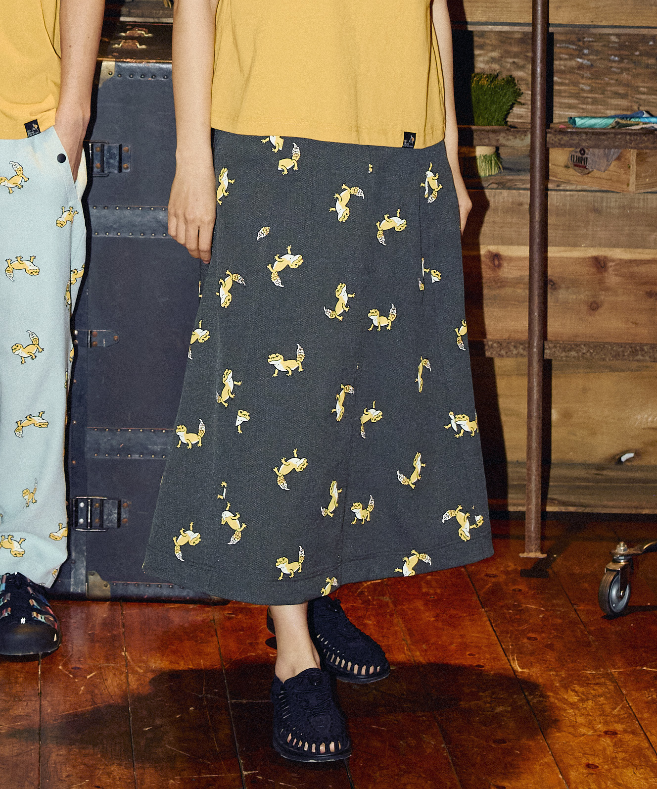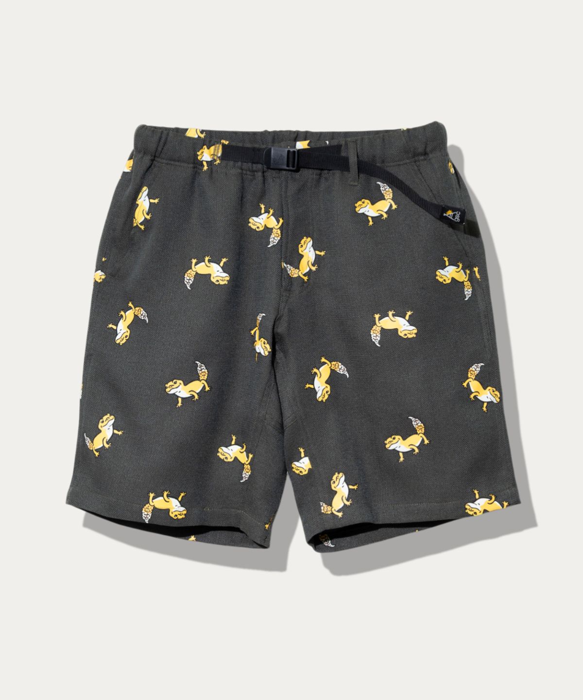 麻のような表情に仕上げたオリジナルのポリエステル生地は、ざっくりとした風合いと優れた通気性が特徴で、暑い季節でも快適に着用できます。モチーフには、遊び心のあるレオパードゲッコーを総柄でプリント。シンプルになりがちな夏のスタイリングに、さりげない個性をプラスしてくれます。
