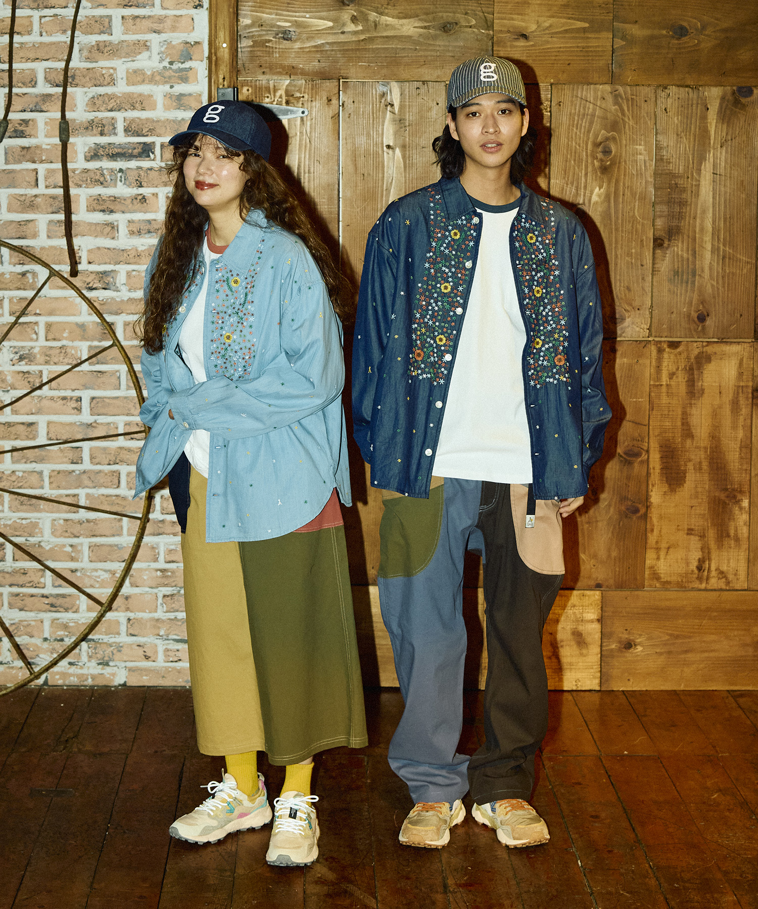 小花柄のデニムパネル刺しゅうシャツ、リメイク感が特徴的なライトオンスのヒッコリー生地を使用したペインターパンツが同時入荷です。ぜひご覧ください♪